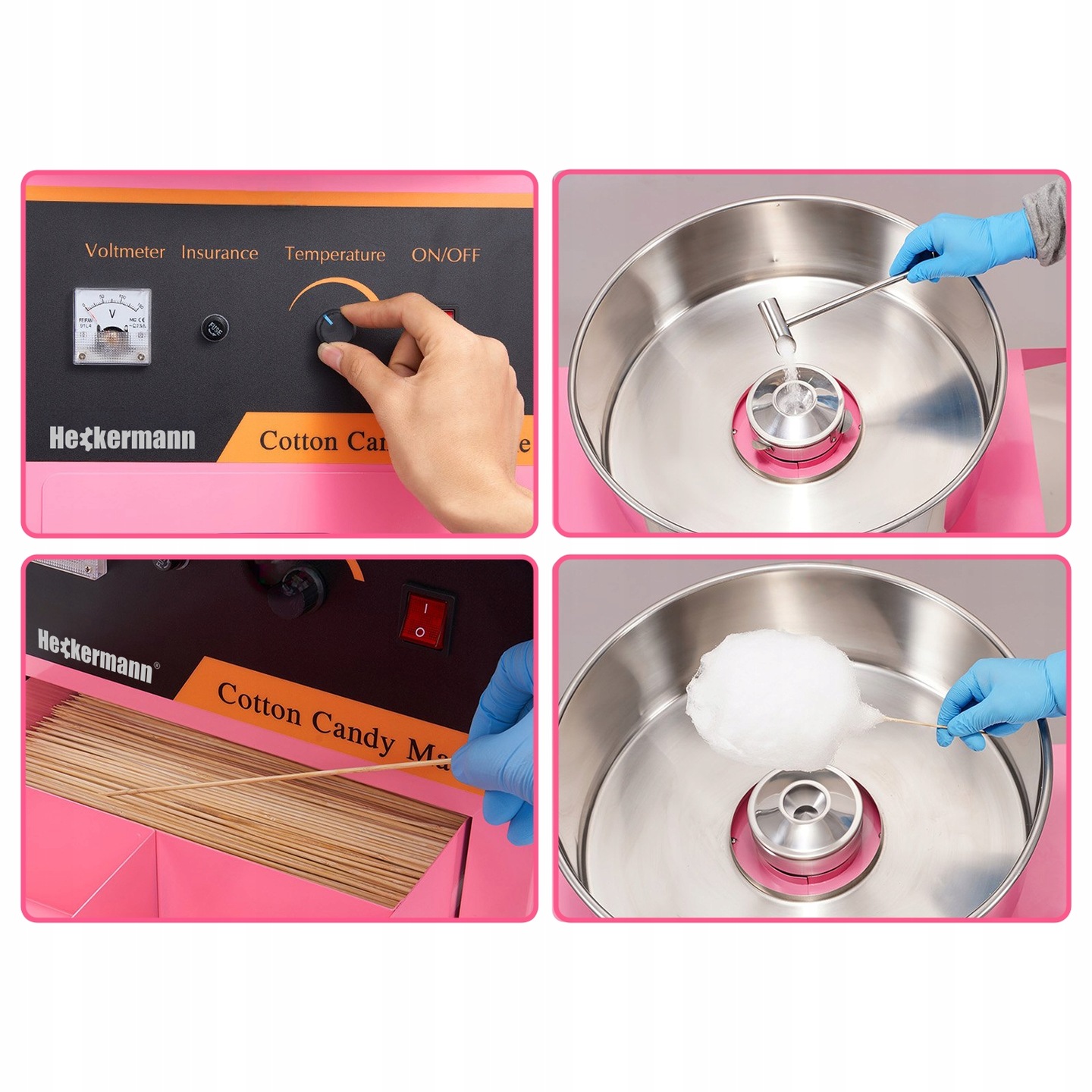 - Машина для производства сладкой ваты может производить примерно 6 конфет в минуту благодаря мощности нагрева 1000 Вт.