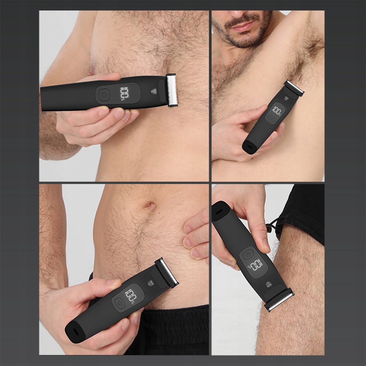 Светодиодный дисплей машины для резки подбородка показывает уровень заряда аккумулятора, поэтому вы можете управлять зарядом. Светодиодный свет обеспечивает адекватное освещение в темных комнатах или при обрезке волос в интимных местах.
