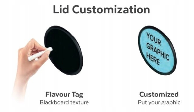 Опциональная возможность установки на крышках стираемых табличек, позволяющих подписывать ластиком вкус продаваемого продукта маркер, и если он изменится, его легко стереть и подписать заново.