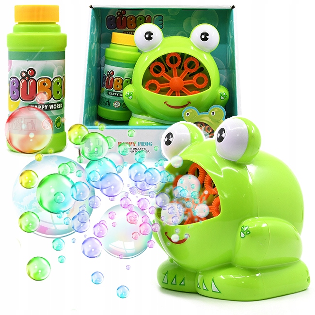 Вы можете играть с лягушкой в саду и многое другое. Игрушка выпускает одновременно большое количество пузырей. Чтобы начать веселье, налейте прилагаемую пузырьковую жидкость в контейнер, помещенный во рту лягушки, а затем включите его с помощью кнопки на задней панели. Готово!