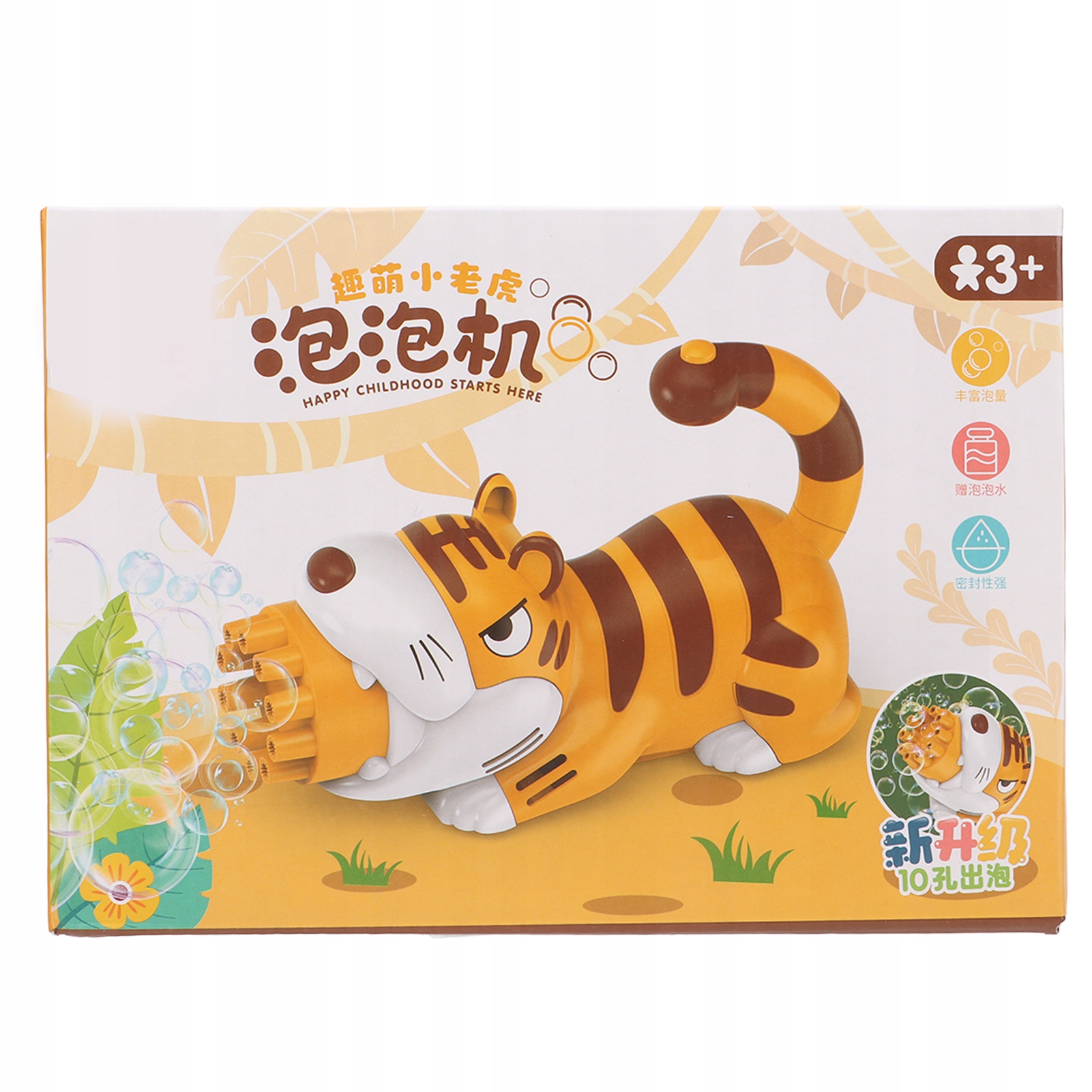 Пузырьковая машина с батарейным питанием, мультяшный тигр, милый, 10 выходных отверстий, нетоксичная портативная машинка для маленьких детей