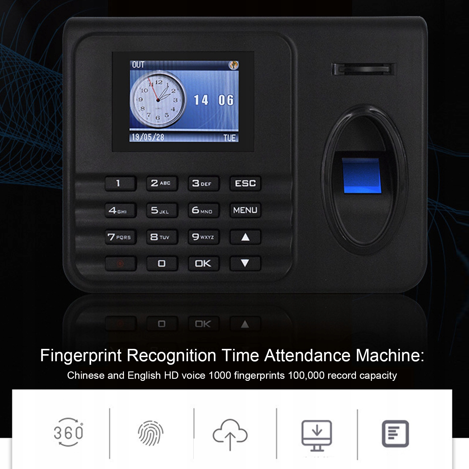 Машина учета рабочего времени по отпечаткам пальцев Распознавание пароля по отпечатку пальца Китайский английский Устройство учета рабочего времени Штекер 100-240VEU