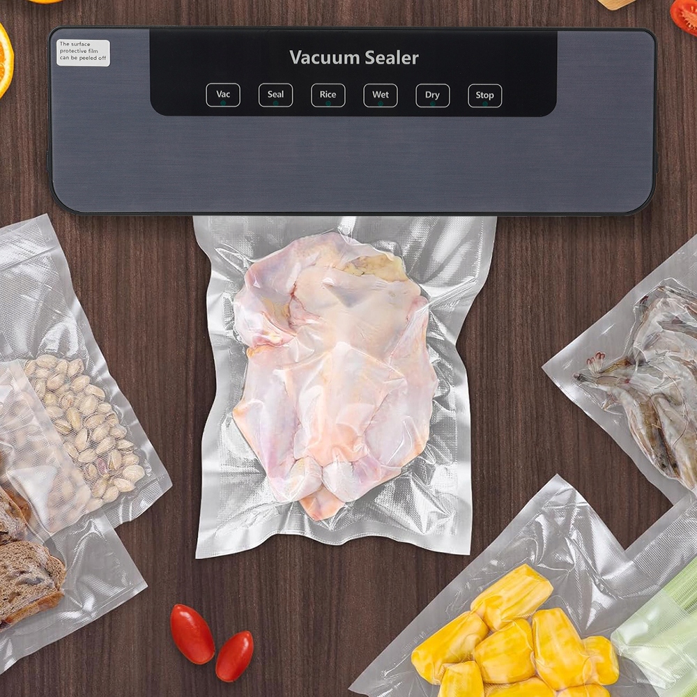 Автоматический вакуумный упаковщик со стильным дизайном, адаптированным к современной эстетике, сильная мощность всасывания, отличная запайка ленты, свежесть в 8 раз дольше, чем при обычном хранении.