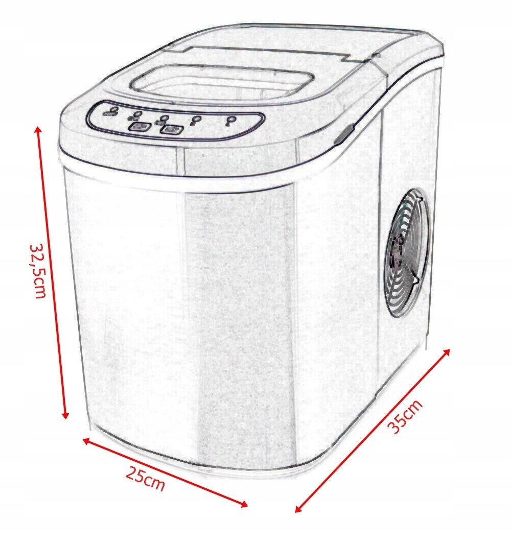 За 24 часа льдогенератор производит примерно 10-12 кг кубиков льда, а порцию в 9 кубиков производит за 12 минут. Идеально подходит для офиса, дома и общественного питания.