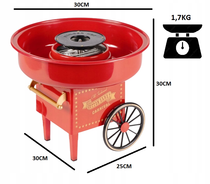 Небольшие габариты и малый вес делают машинку для сахарной ваты небольшой и легкой, поэтому ее можно легко переносить в любое место и когда нужно спрятать, в шкафу может занять много места.