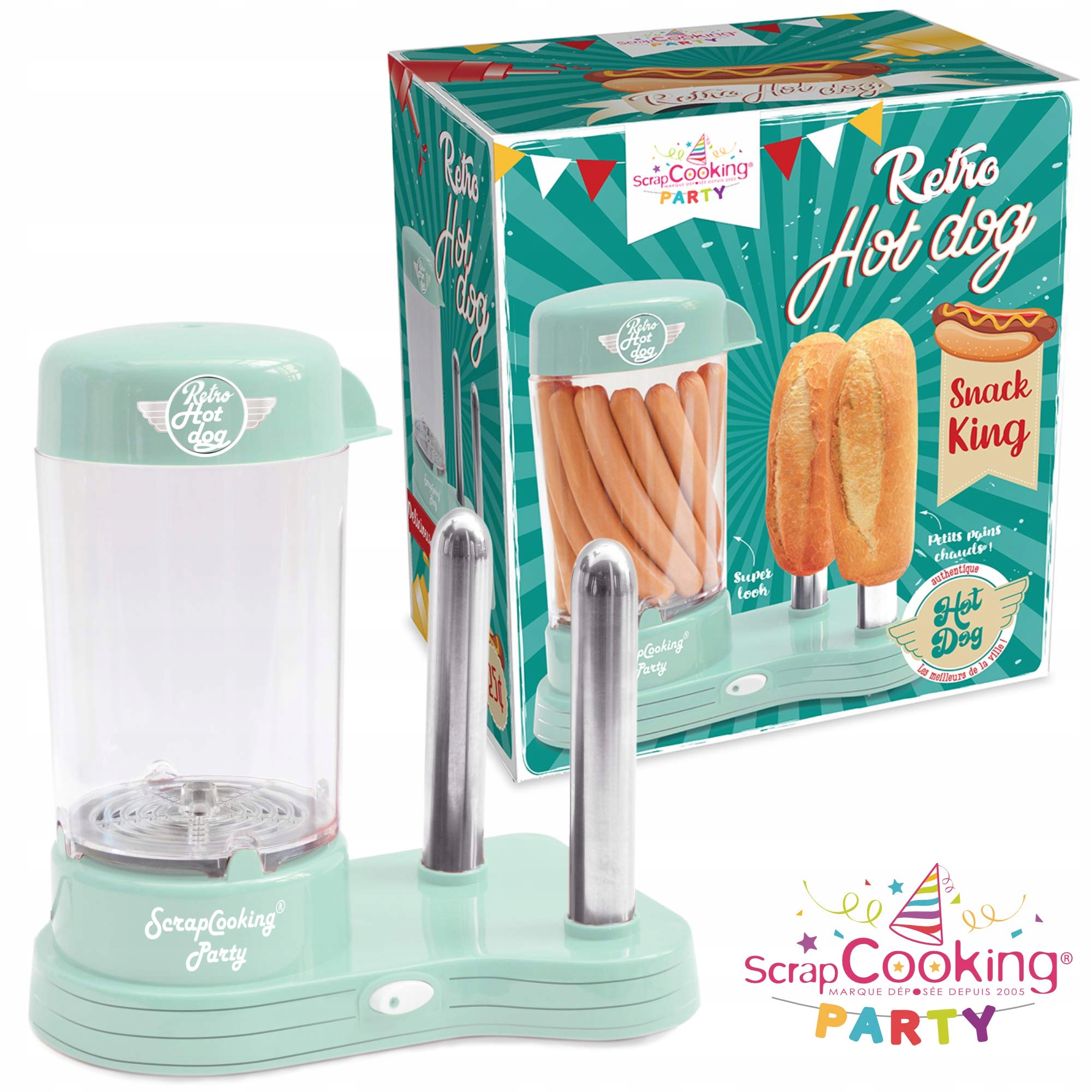 - b>: SCRAP COOKING 601 Аппарат для хот-догов на 12 сосисок и 2 хлеба, стиль ретро, винтаж, гриль, для вечеринок, насечки, зеленый, пищевой пластик, белый