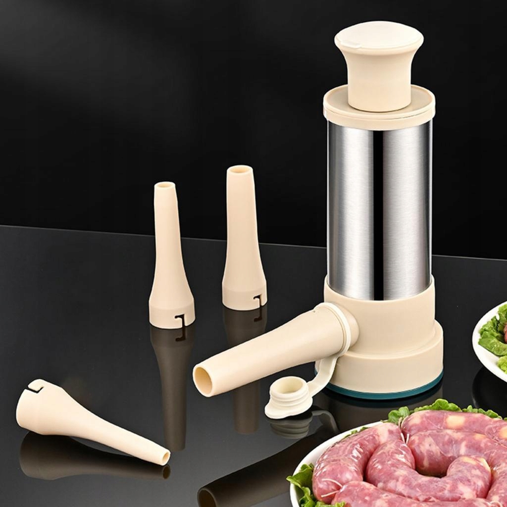 [Прочный материал] Этот наполнитель для колбас изготовлен из пищевых материалов и нержавеющей стали, которая является прочной и прочной и может использоваться в течение длительного времени.