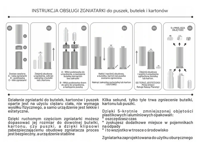 Оплачивая «МАШИНА ДЛЯ РАЗДАВЛИВАНИЯ БУТЫЛОК, БАНОК И КОРОБОК», вы можете быть уверены, что данный товар из каталога «Остальные» будет доставлен из Польши и проверен на целостность. В цене товара, указанной на сайте, учтена доставка из Польши. Внимание!!! Товары для Евросоюза, согласно законодательству стран Евросоюза, могут отличаться упаковкой или наполнением.