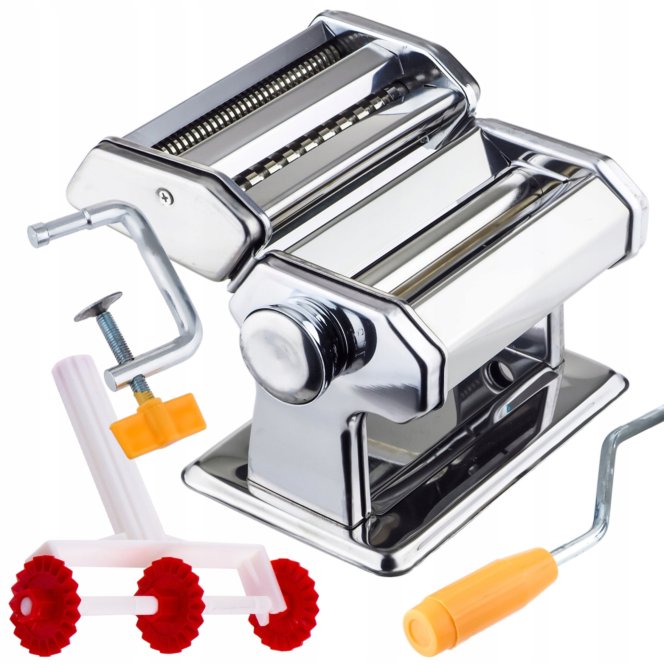 а также раскатать тесто до нужной толщины. Устойчивое широкое основание оснащено нескользящими резиновыми ножками. Позволяет готовить домашние макароны двух ширин: нить 1,6 мм и лента 6,6 мм. Кроме того, он оснащен ручной регулировкой толщины (9 настроек от 1 мм) раскатываемого теста. Машинка имеет в комплект входит ручка для крепления к столешнице и тройное тестомесительное колесо. Его самое большое преимущество в том, что его можно использовать для приготовления макарон, приготовления теста и измельчения табака.