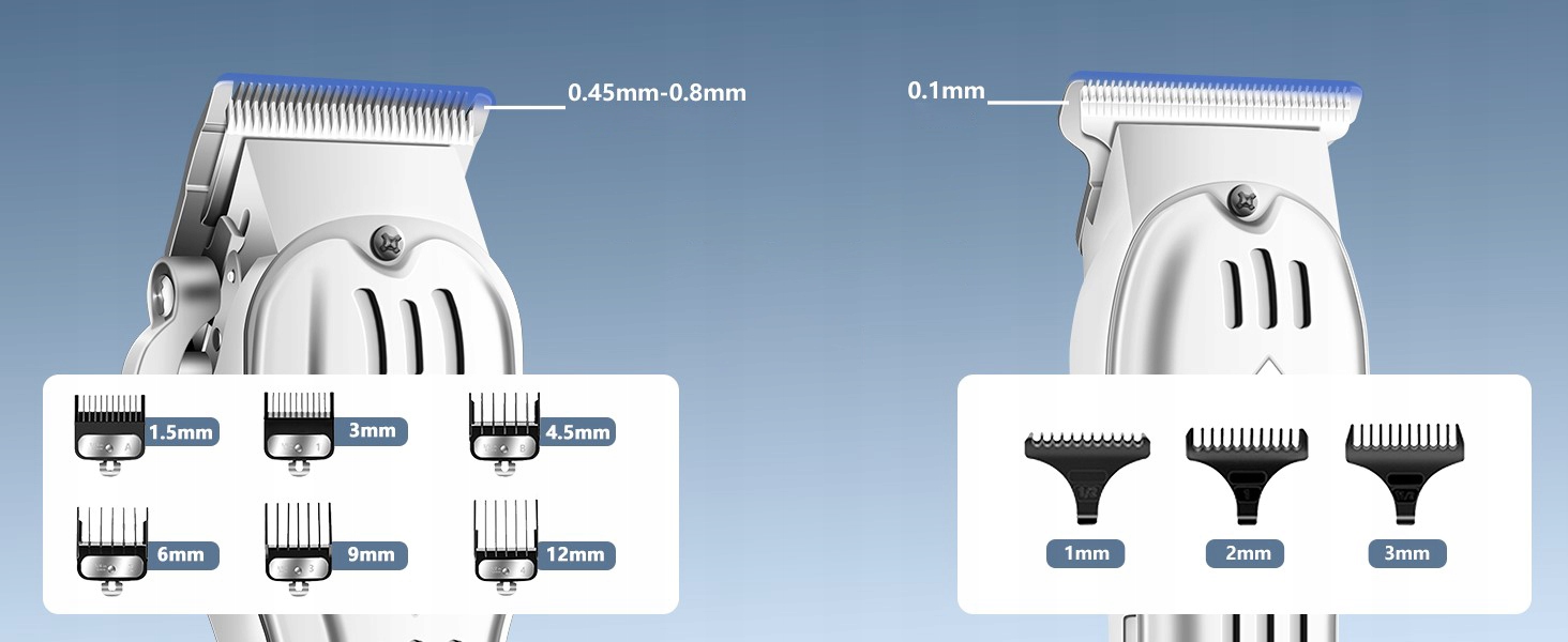 - Благодаря самым сложным лезвиям из углеродистой стали и микрорегуляционной стержне (0,46-8 мм) создают любую стильную прическу, даже самая толстая волоса можно легко порезать. Классическая серебряная металлическая оболочка имеет блестящую отделку и обеспечивает отличный контроль и комфорт. Ergonomic design with a texture of a honeycomb at the back of the handle, non-slip and non-slip, providing a reliable and stable grip
