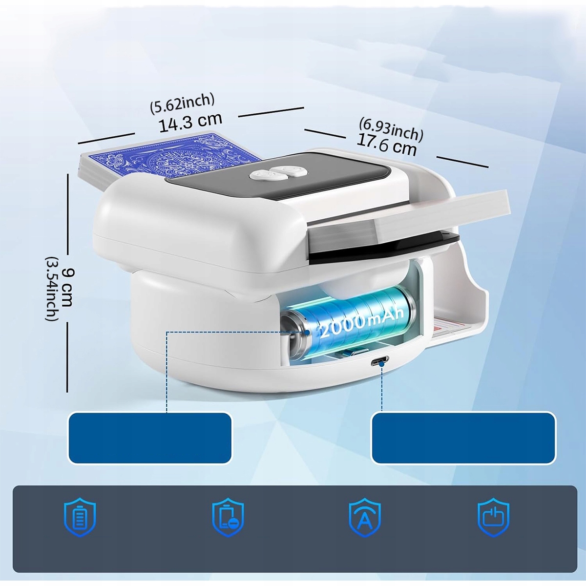 ✅Компактный и портативный: размеры примерно 14,3 х 17,6 х 9 см. Компактный дизайн устройства для тасования карт делает его идеальным компаньоном для вечерних игр дома, на вечеринках или во время активного отдыха. Легко транспортировать и использовать где угодно!