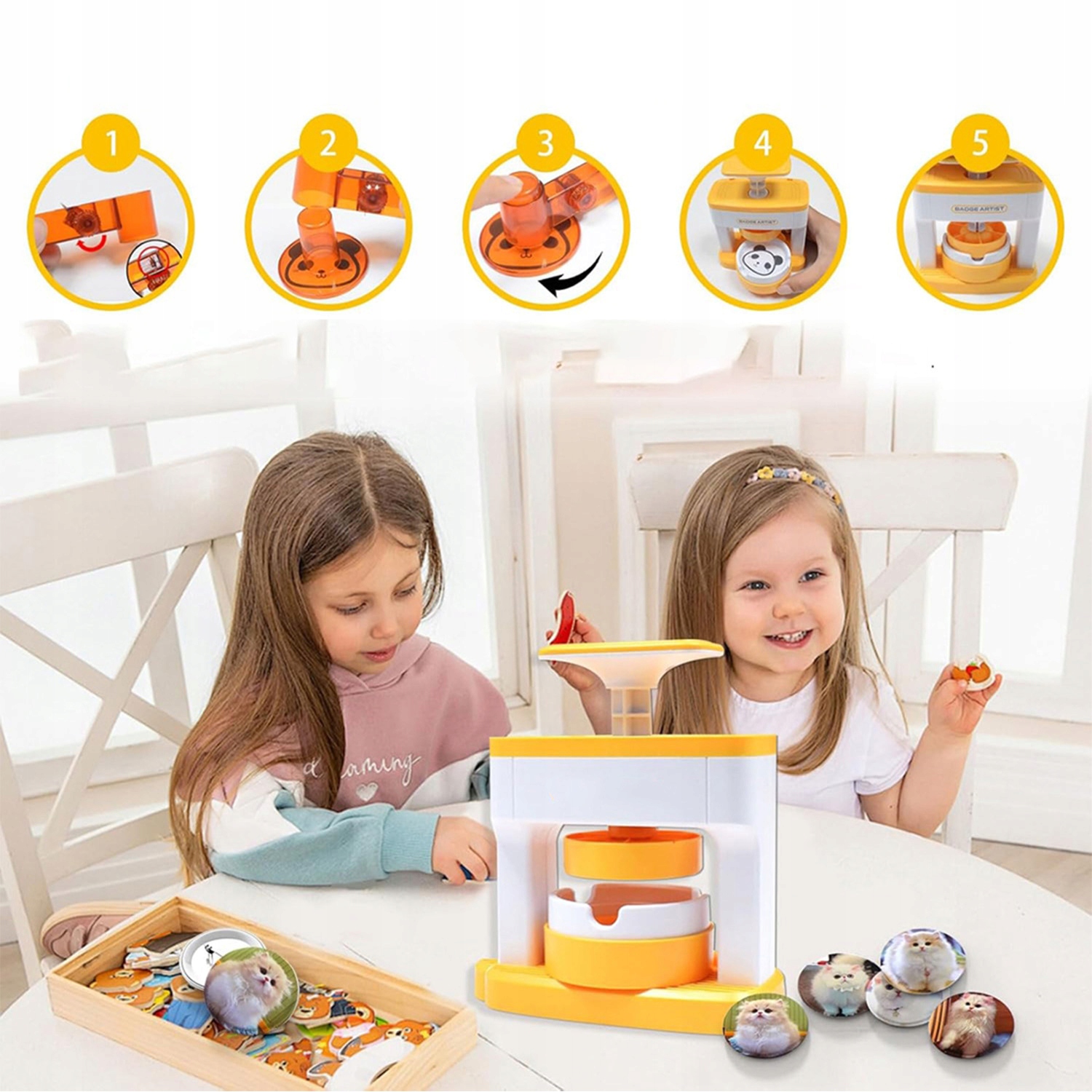 Эта машина изготовлена из прочного пластика, имеет цельный корпус, легкий вес, длительный срок службы и простоту в эксплуатации, что развивает у детей практические навыки. Персонализируйте свои кнопки и значки с помощью специального текста, рисунков, фотографий или цифр, что распространено в компаниях, школах, на праздники, дни рождения, на фабриках, при обмене подарками и т. д. Легко сделайте это сами и обогатите свою жизнь.