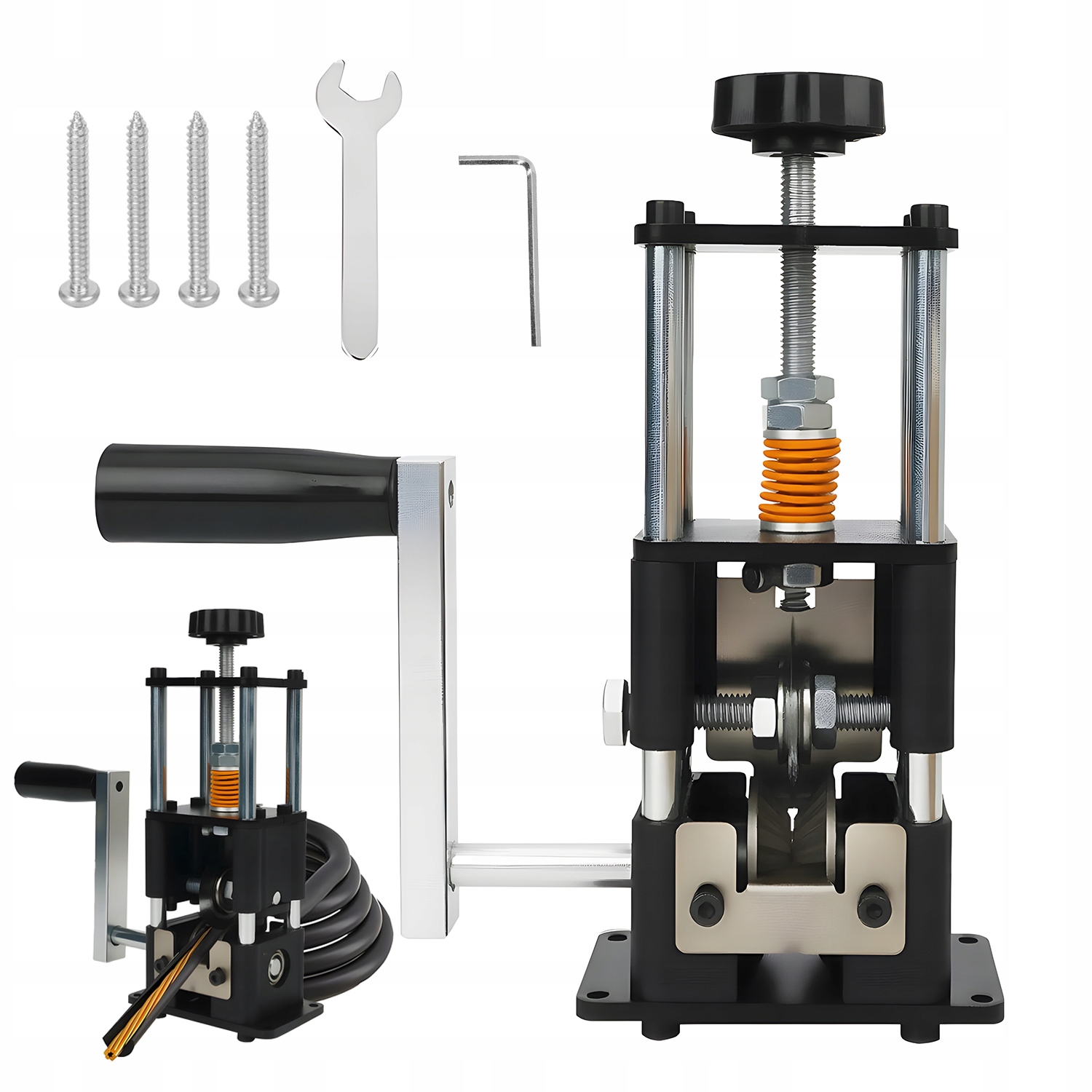 - Просто пропустите кабель через соответствующее отверстие и поверните рукоятку, чтобы легко зачистить провод.