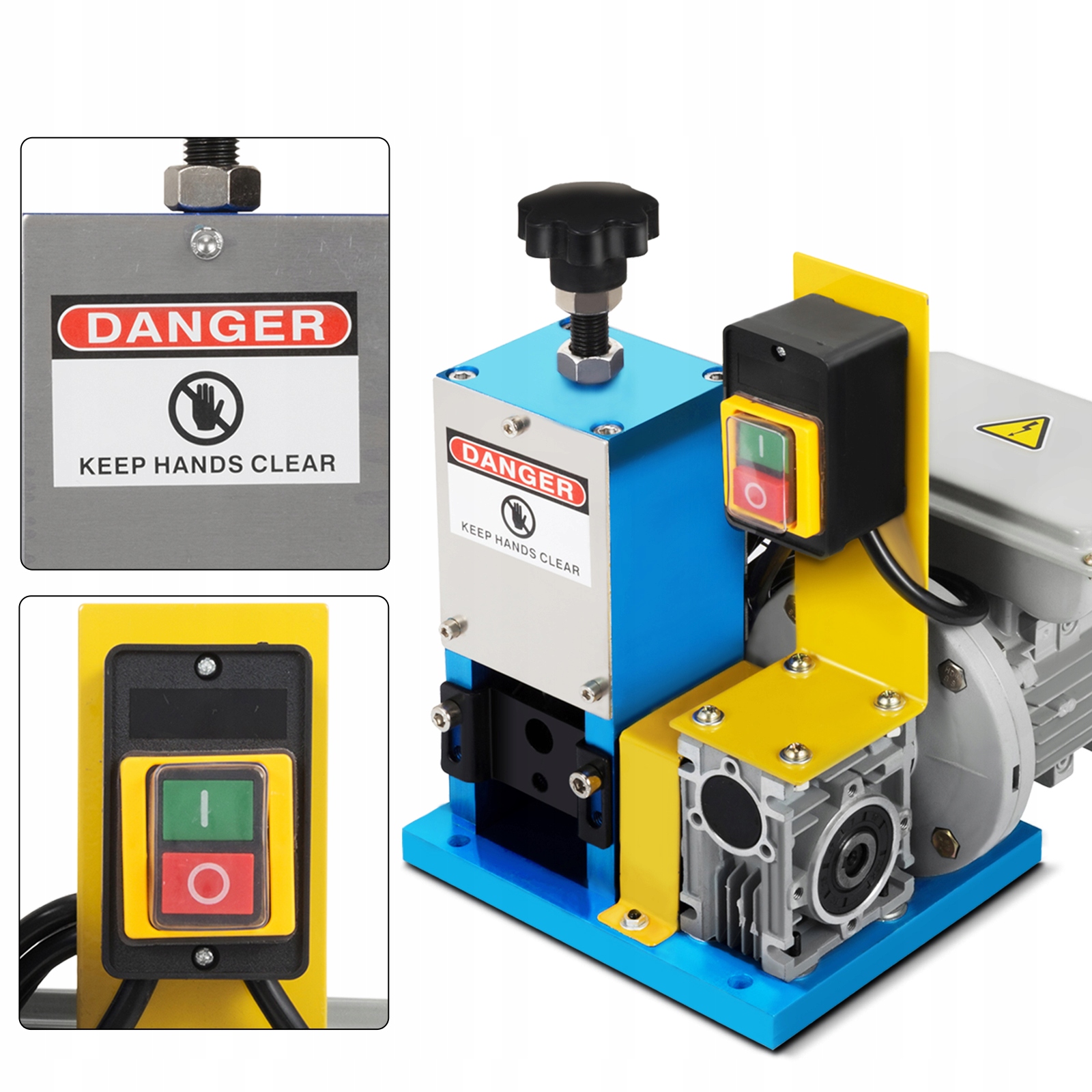 • Широкая совместимость: машина приводится в движение электродвигателем, а регулируемые лезвия и ролики подходят для проволоки всех размеров от 1,5 мм (0,05 дюйма) до 25 мм (0,98 дюйма). дюйм).