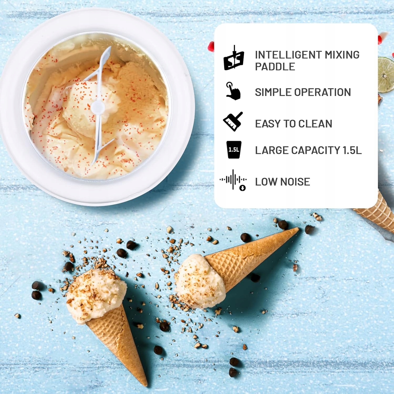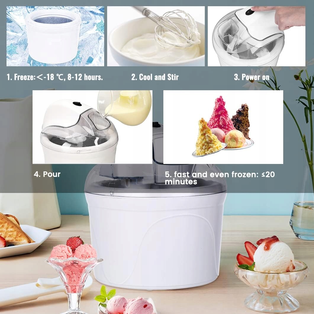 Мороженое - это деликатес, который любит почти всем, а не только в жаркие дни. С сегодняшнего дня вы можете съесть их, из которого и сколько вы хотите. Благодаря машине мороженого вы будете готовить мороженое, которое вам нравится больше всего. До 1500 мл. В течение примерно 30 минут вы будете наслаждаться вкусом мороженого, сорбетов или замороженного йогурта. Здоровый и вкусный. Все, что вам нужно сделать, это вставить массу и установить рабочее время
