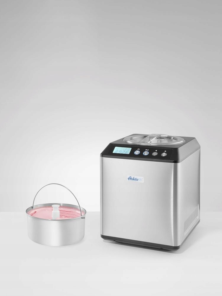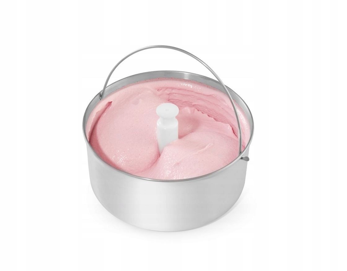 Машина оснащена 2-литровым контейнером для мороженого, компрессором с воздушным охлаждением и температурным диапазоном от -10°C до -35°C, цифровым дисплеем с подсветкой (указающим, среди прочего, рабочее время и время замораживания). температуры), лопатку для смешивания и прозрачную крышку с удобной системой закрытия Twist-Lock.