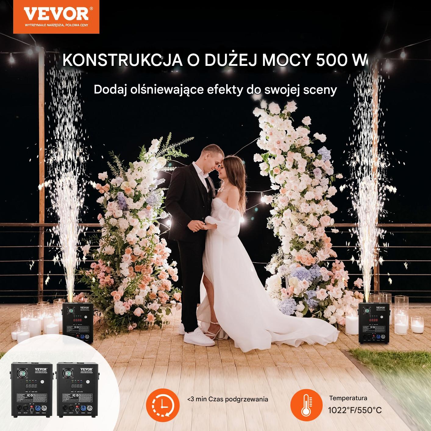 Профессиональная машина для холодных искры с мощностью 500 Вт, созданной для эффективных шоу света на различных событиях. Расширенная система управления DMX позволяет синхронизировать до шести устройств, что позволяет создавать впечатляющие и незабываемые визуальные эффекты. Регулируемая высота искры от 2 до 4 метров дает полный контроль над атмосферой шоу.