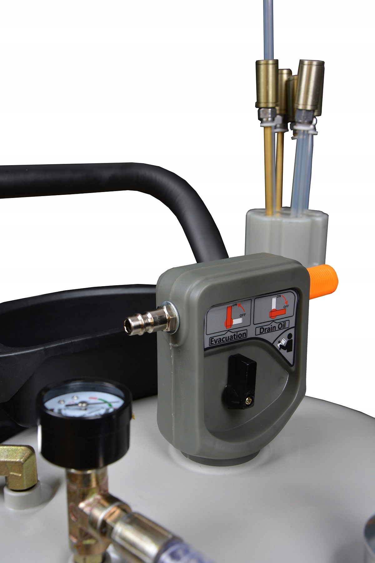 Устройство для всасывания и слива масла с емкостью. 80 литров, которые можно легко опорожнить, подключив к компрессору.
