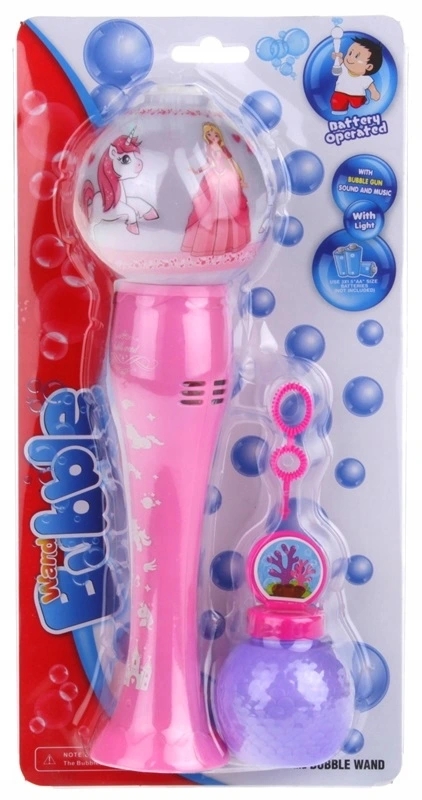 Замечательная машинка в форме палочки позволит вам насладиться видом сверкающих пузырьков. Просто одним движением привинтите жидкость из контейнера ко дну игрушки, нажмите кнопку на задней стороне игрушки и начните творить чудеса! Пузыри, звуковые и световые эффекты наверняка порадуют каждого любителя волшебства. Когда силы маленьких волшебников иссякнут, можно снова открутить контейнер и с удовольствием лепить обычные пузыри с помощью обычного воздуходувки с двумя отверстиями разного размера, входящего в комплект.