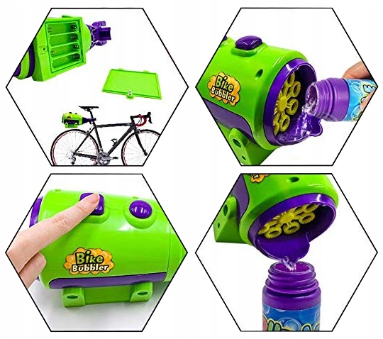 Теперь каждая поездка на велосипеде будет потрясающей. Просто прикрепите машинку для стрижки к велосипеду под седлом, налейте жидкость, нажмите кнопку, и во время езды начнут образовываться пузыри! Игрушка имеет устойчивую основу, поэтому ее можно использовать и как стационарную мыльную машину, которую можно разместить практически где угодно (благодаря небольшим размерам).