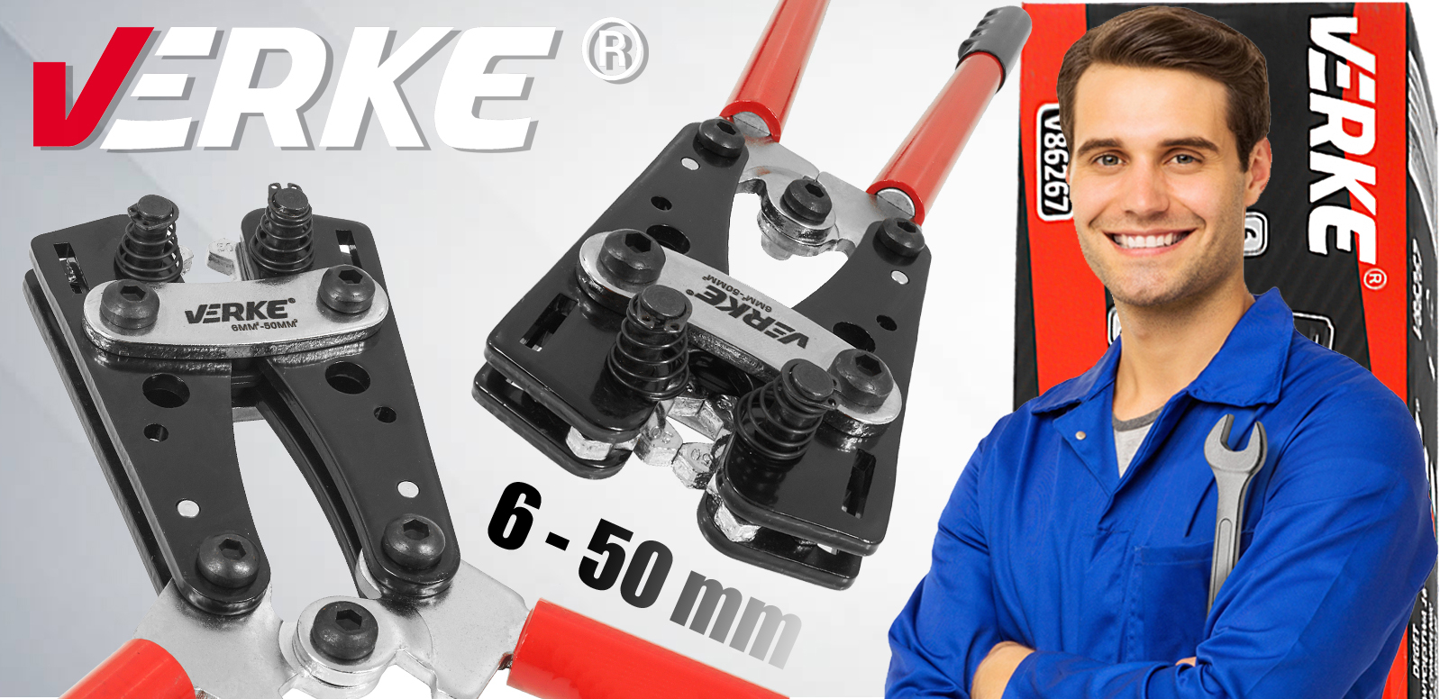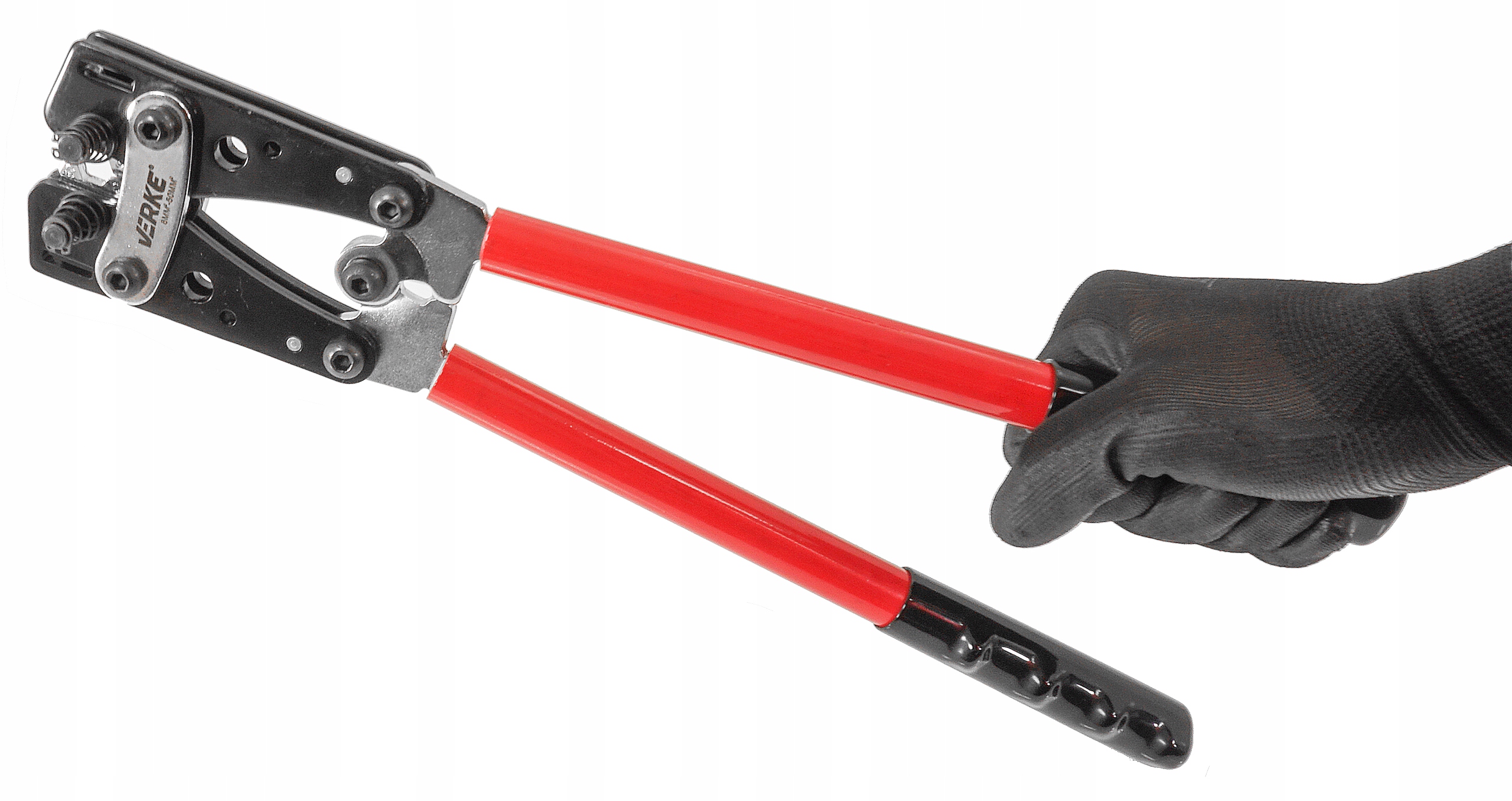 Универсальные клещи для кабельных гильз VERKE. Изготовлен из закаленной стали. Проверенная и прочная конструкция позволяет использовать инструмент даже самым требовательным пользователям.