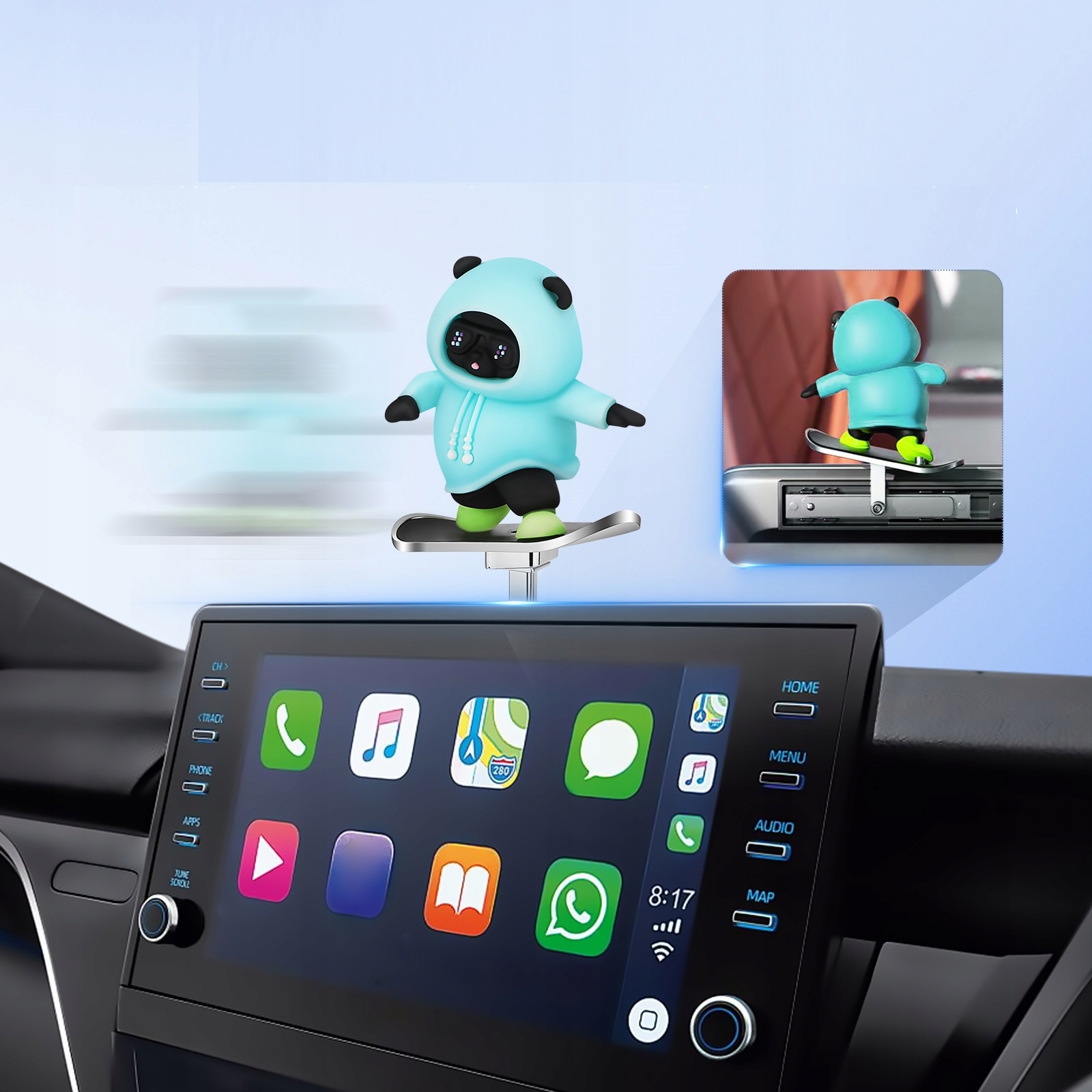 УКРАШЕНИЕ АВТОМОБИЛЯ ПАНДЫ НА СКЕЙБОРДЕ, ФИГУРКА МЕДВЕДЯ, КАТУЮЩЕГОСЯ НА СКЕЙТЕ, СИНЯЯ