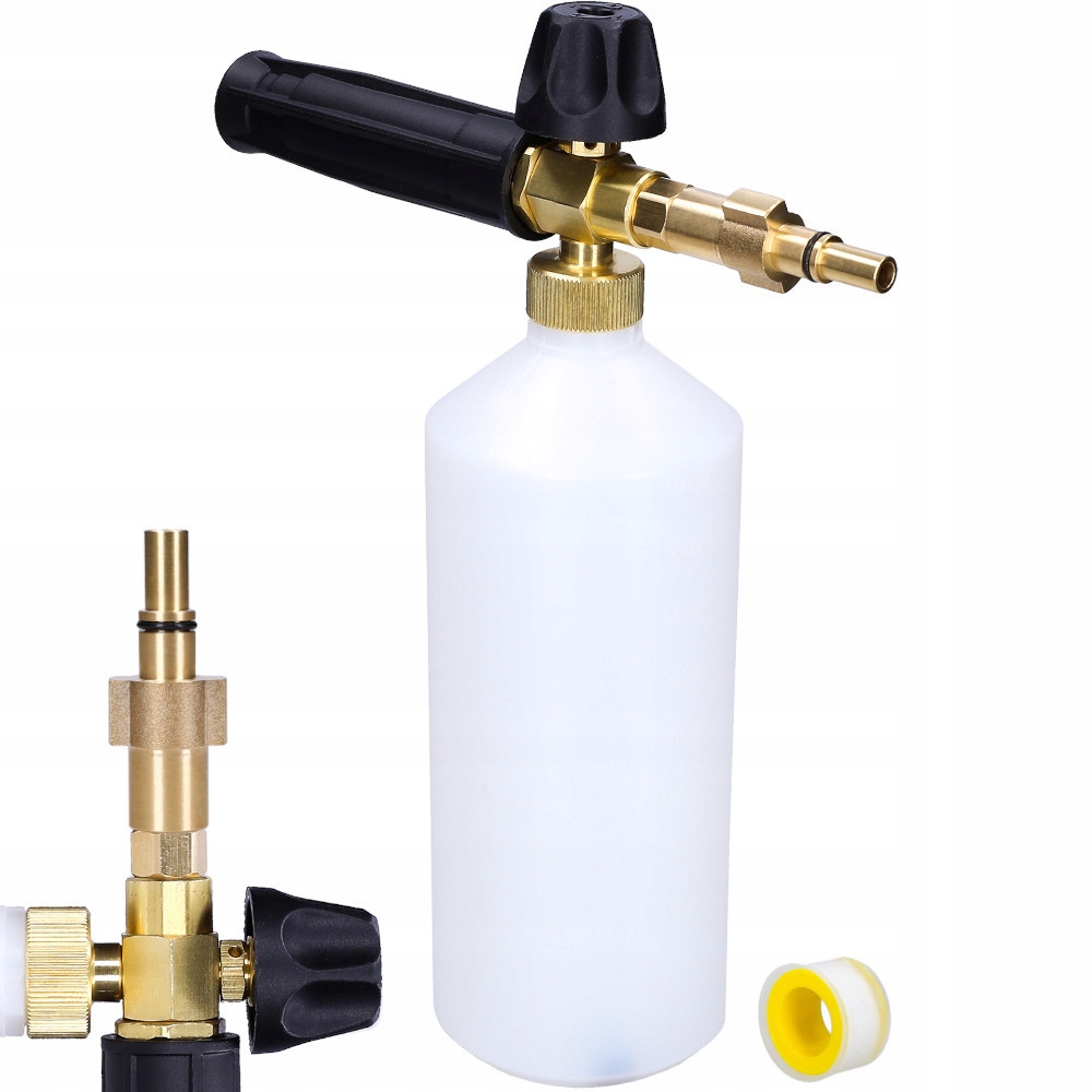 Пенообразователь оснащен быстродействующим разъемом, используемым в стиральных машинах MacAllister Black&Decker. Пластиковый резервуар для воды вмещает 1 литр чистящих средств. Он изготовлен из полупрозрачного материала, что позволяет полностью контролировать уровень жидкости внутри устройства.