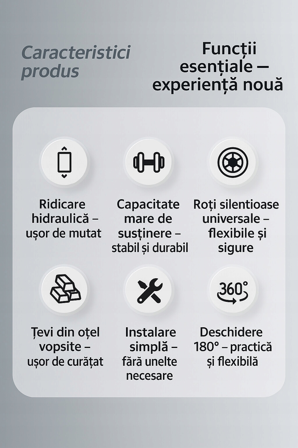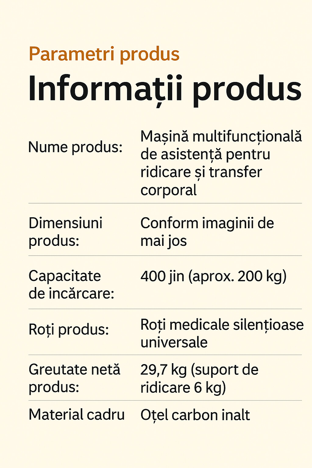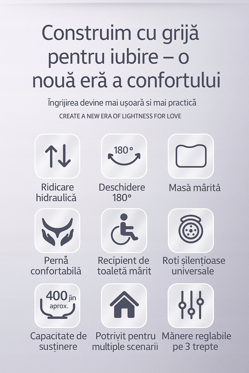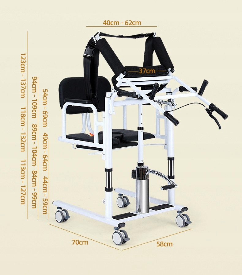 <ул> <ли> ? Регулируемый гидравлический подъемник (43–65 см) — адаптируется к различным потребностям и сценариям. <ли> ? Высокая грузоподъемность — выдерживает до 260 кг, обеспечивая устойчивость и безопасность. <ли> ? Интеллектуальная система перемещения — пациенту можно помочь встать, снять штаны и сходить в туалет с минимальными усилиями со стороны лица, осуществляющего уход. <ли> ? Дизайн «2 в 1»: быстросъемная спинка позволяет быстро превратить его в сервировочный стол. <ли> ? Оптимальный комфорт — утолщенная губчатая подушка и эргономичная спинка защищают кожу и предотвращают дискомфорт. <ли> ? Универсальные бесшумные медицинские колеса (360°) – легкая мобильность и бесшумность передвижения. <ли> ? Прочный стальной каркас - порошковое покрытие цвета «Тигр» (импортировано из Австрии) для повышения прочности и долговечности. <ли> ? Простая сборка — не требует сложных инструментов.Преимущества для пользователей и сопровождающих