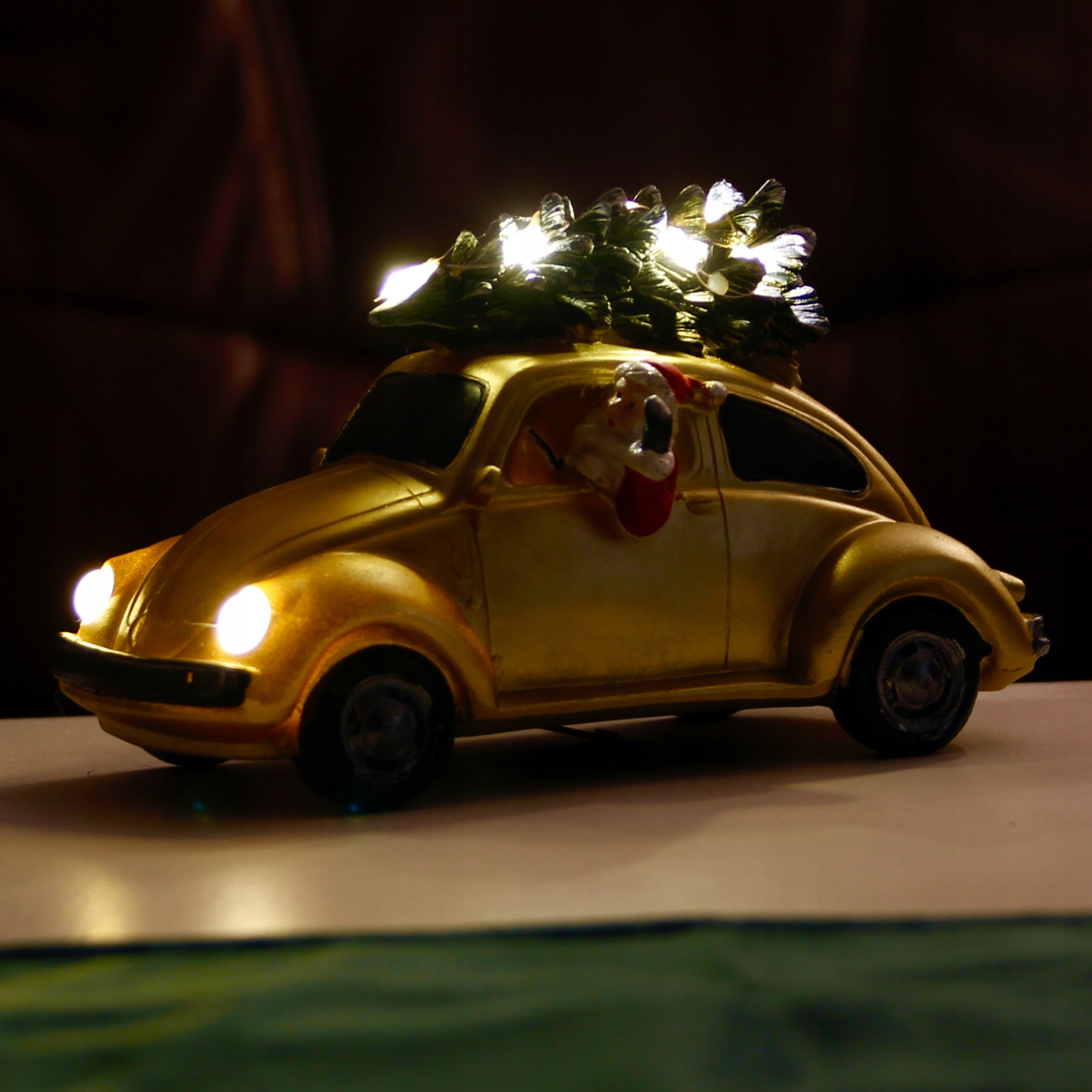 МАШИНА З ДІДОМ МОРДОМ.Світлодіодна ФІГУРА ЗОЛОТО ДЕКОРАЦІЯ