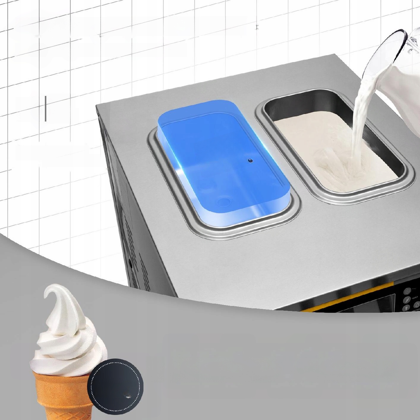 - ✅ Интеллектуальная ЖК -панель с отображением мороженого и регулировки твердости