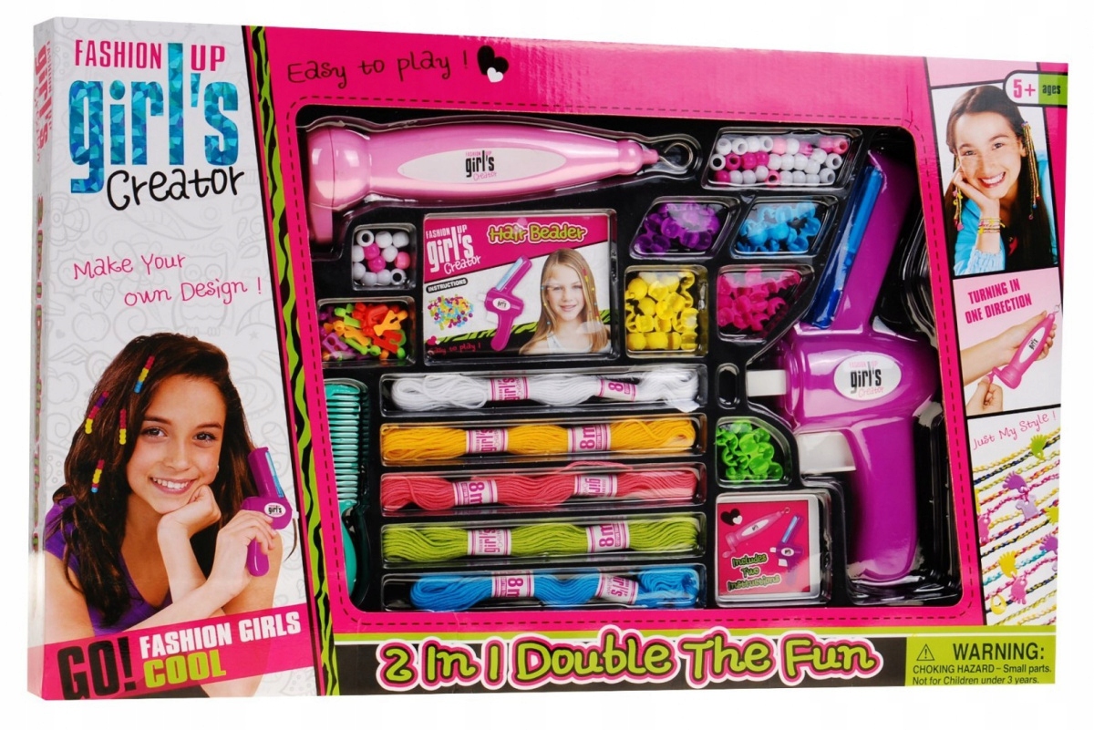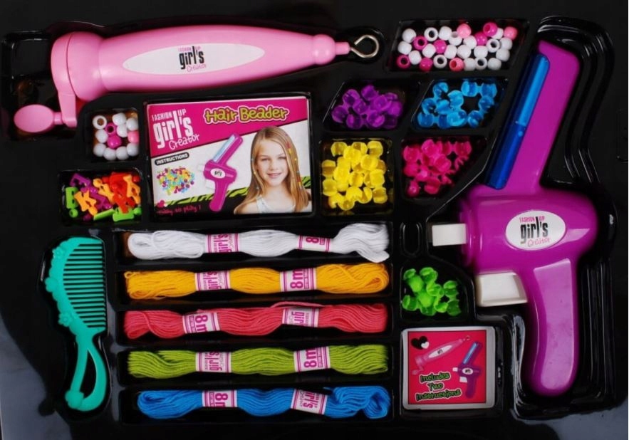 Представляем идеальный набор для надевания бус на волосы и изготовления замечательных браслетов. Благодаря разнообразию элементов ваш ребенок сможет каждый день использовать разные оригинальные идеи для украшения волос или украшений с характером. В нашем распоряжении целых сто один декоративный элемент, из которого можно сделать фантазийные украшения. Ваш ребенок решает, как должно выглядеть каждое украшение. Набор 2-в-1 для создания украшений и браслетов — идеальная игрушка, которая познакомит вашего ребенка с творческим измерением веселья. Ваш ребенок сможет создать уникальные украшения в виде браслетов, колье, кулонов, колье, а также уникальные комплекты украшений. В игре можно ограничить только детское творчество