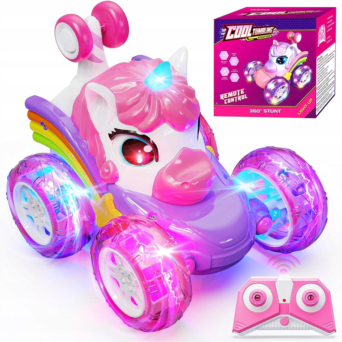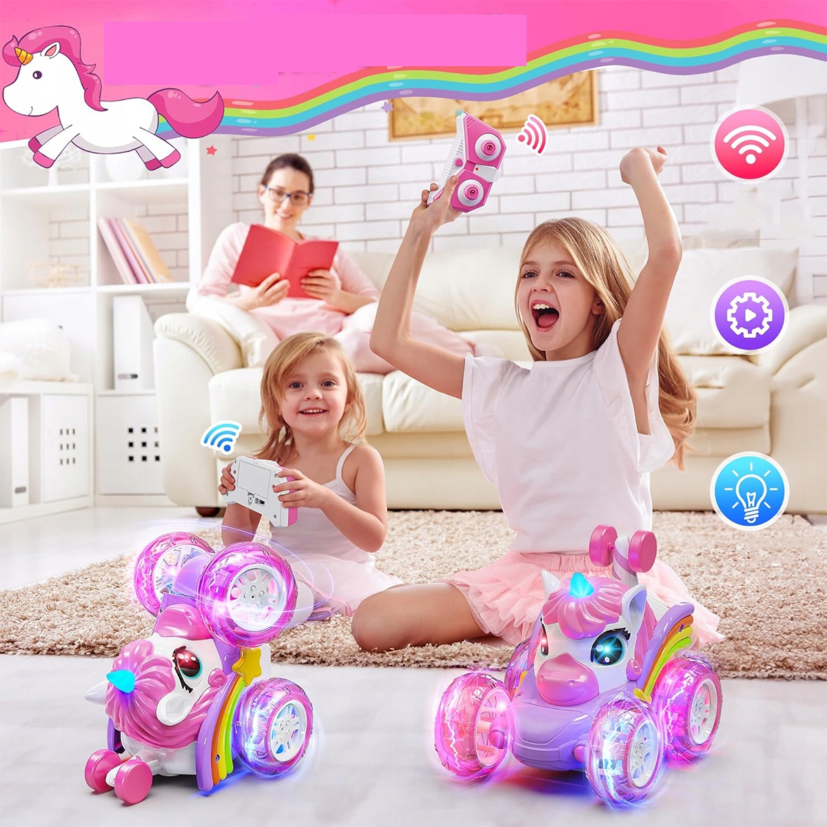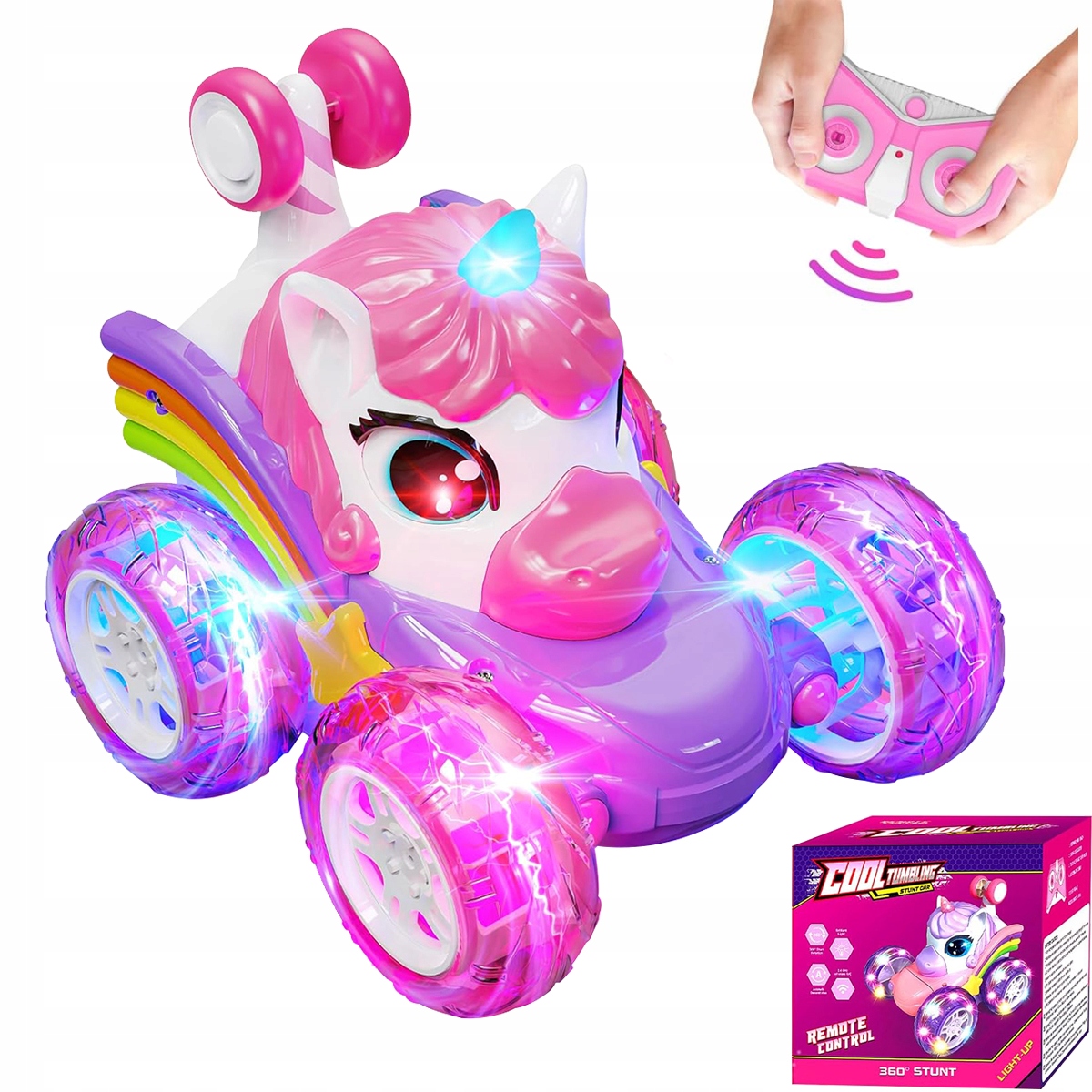 Машинка-единорог на дистанционном управлении не только крутится, но и выполняет скоростные трюки. Простая в использовании и отзывчивая, это отличная игрушечная машинка для игр в помещении или на улице.