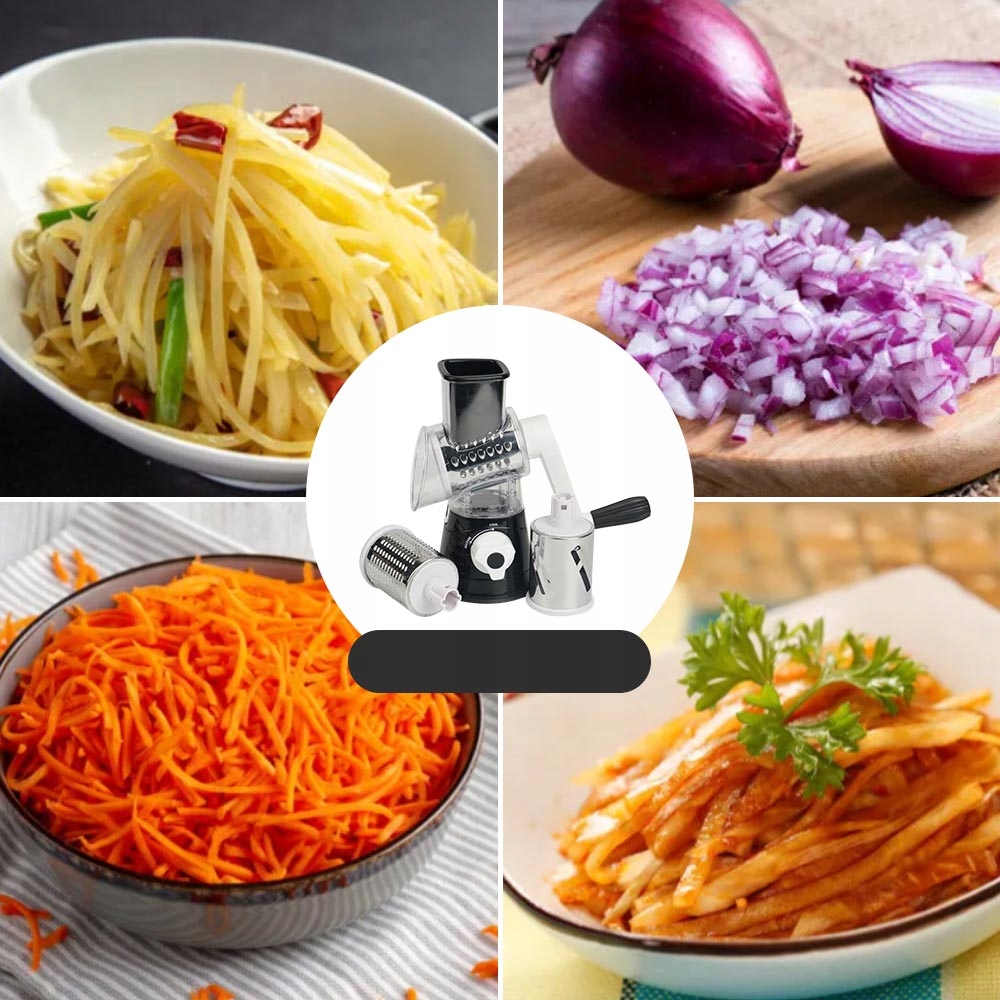 🧀🧀🧀 【Многофункциональный инструмент】 С помощью этой многофункциональной вращающейся терки для сыра вы можете легко нарезать сыр, огурцы, морковь, кабачки, картофель, орехи и многое другое. Поднимите приготовление пищи на новый уровень с помощью этой удобной слайсера-мандолины, который позволяет быстро взбивать салаты, пиццу, супы и десерты. Эту вращающуюся терку для сыра с ручкой также можно использовать на кухне в качестве овощерезки и мандолины.