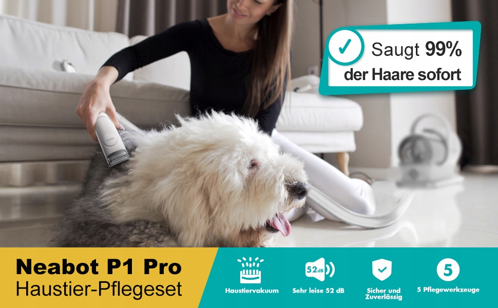 - 【Пылесос для шерсти домашних животных】Традиционные инструменты для ухода за шерстью домашних животных приносят много хаоса и шерсти в ваш дом. Но наш набор для ухода P1 Pro с функцией вакуума всасывает 99% шерсти домашних животных, одновременно подстригая и расчесывая волосы в контейнер, который может поддерживать чистоту в вашем доме. Больше никаких спутываний и скоплений волос по дому.
