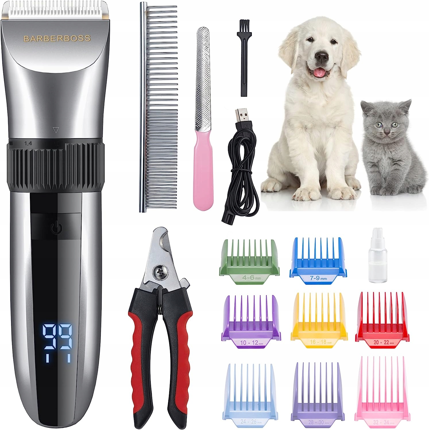 - Универсальная машинка для стрижки домашних животных. Наша машинка для стрижки подходит для стрижки вашей собаки, кошки или другого пушистого друга. В комплект входят 8-цветная безопасная расческа, кусачки для ногтей из нержавеющей стали, пилочка для ногтей для домашних животных и расческа из нержавеющей стали.