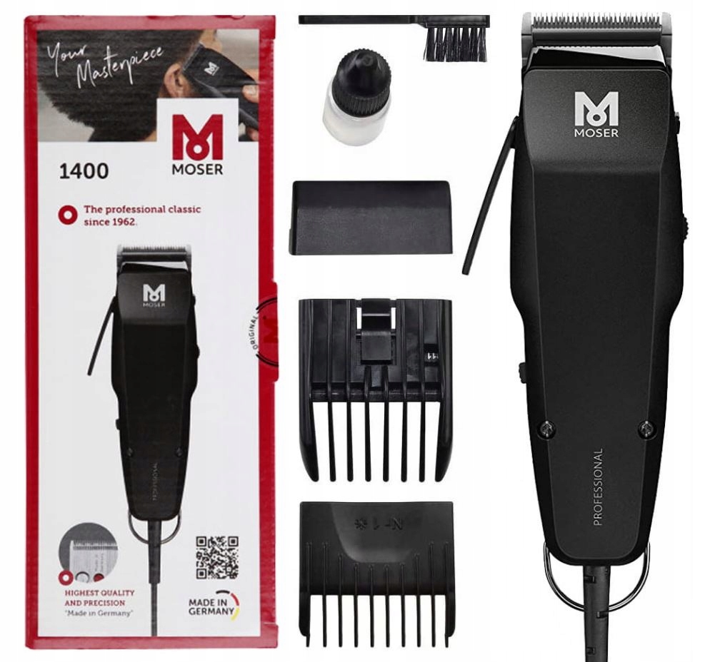 Представляем новейшее воплощение легендарной модели Moser. 1400 машинка для стрижки. Создан и изготовлен полностью на немецкой фабрике. По сравнению со своими предшественниками, он оснащен новым катушечным двигателем, усиленным на 50%, новой конструкцией корпуса, оснащенной более эффективной системой гашения вибраций, и новейшей конструкцией лопастей. Качество – это обязательство, на бритву распространяется трехлетняя сервисная поддержка потребителей
