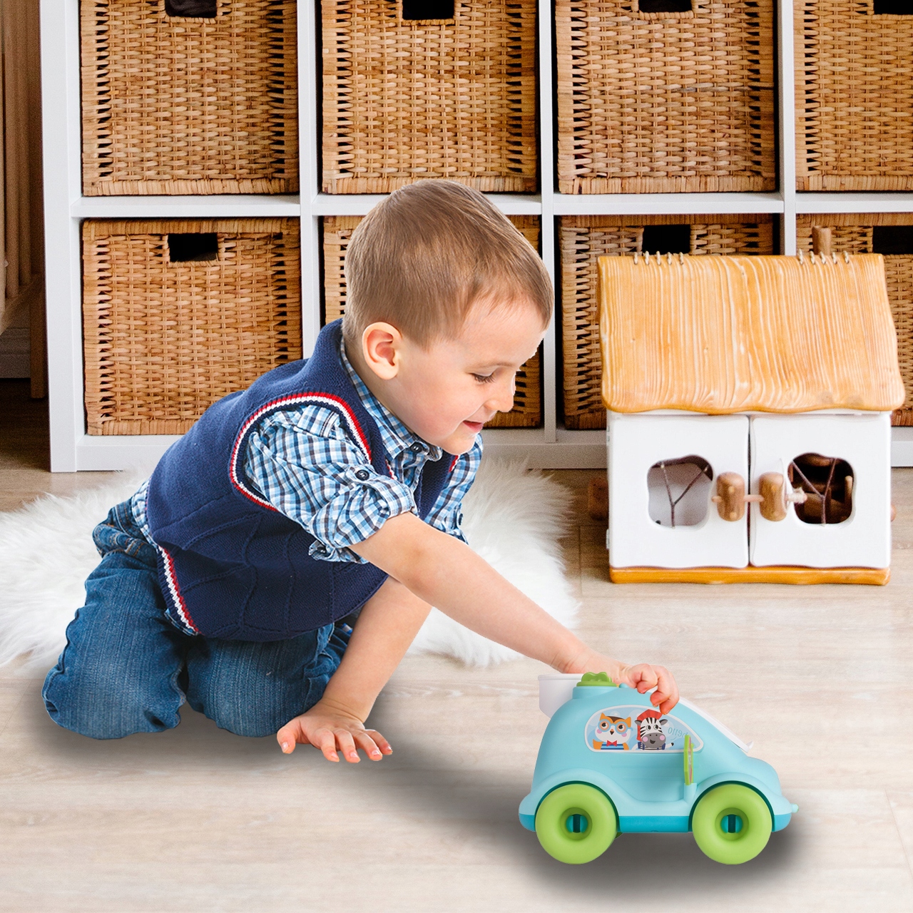 Автомобиль с блоками - совершенно новый способ играть в сортировку. Многообразованный автомобиль имеет отверстия с соответствующими формами и красочными блоками, которые малыш отделяет и бросает в соответствующие отверстия.
