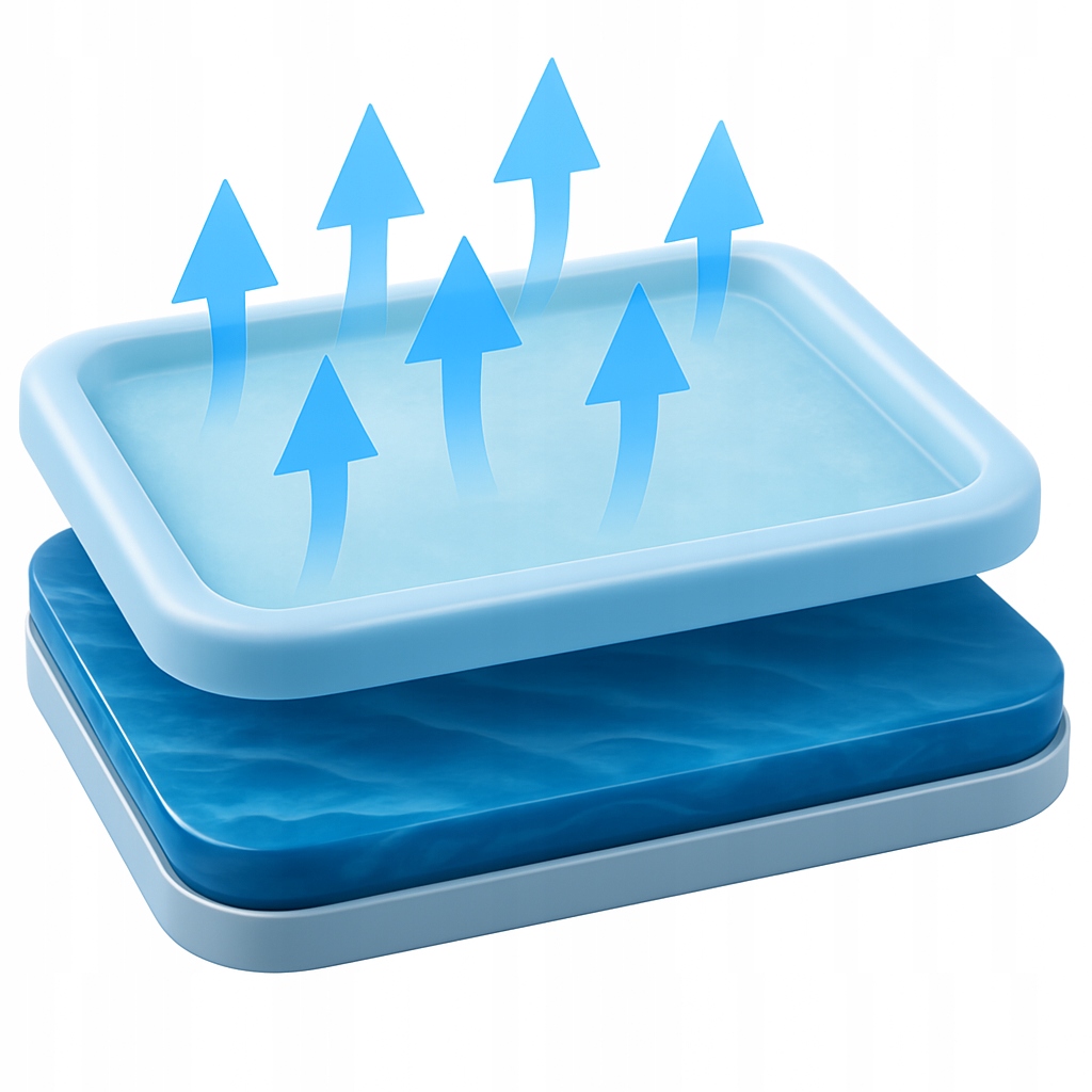 ➡weva Существует специальный охлаждающий гель b>, который после охладителя в морозильной камере (мин. 12 часов) поддерживает низкую температуру на поверхности дорожки в течение длительного времени. Лед - без электричества, кабелей и шума.