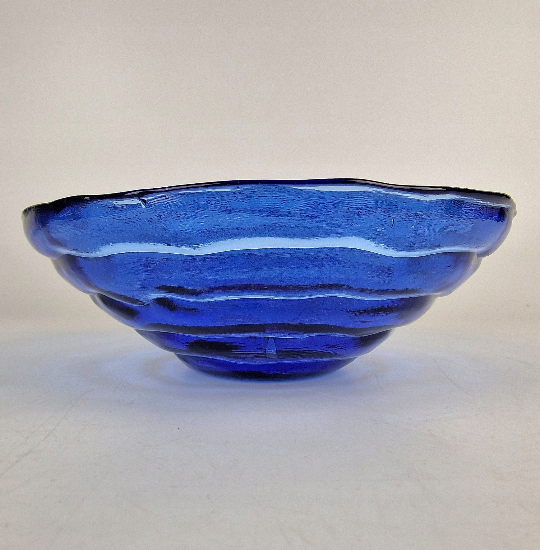 Массивная чаша из кобальтового стекла. Дизайнерское блюдо