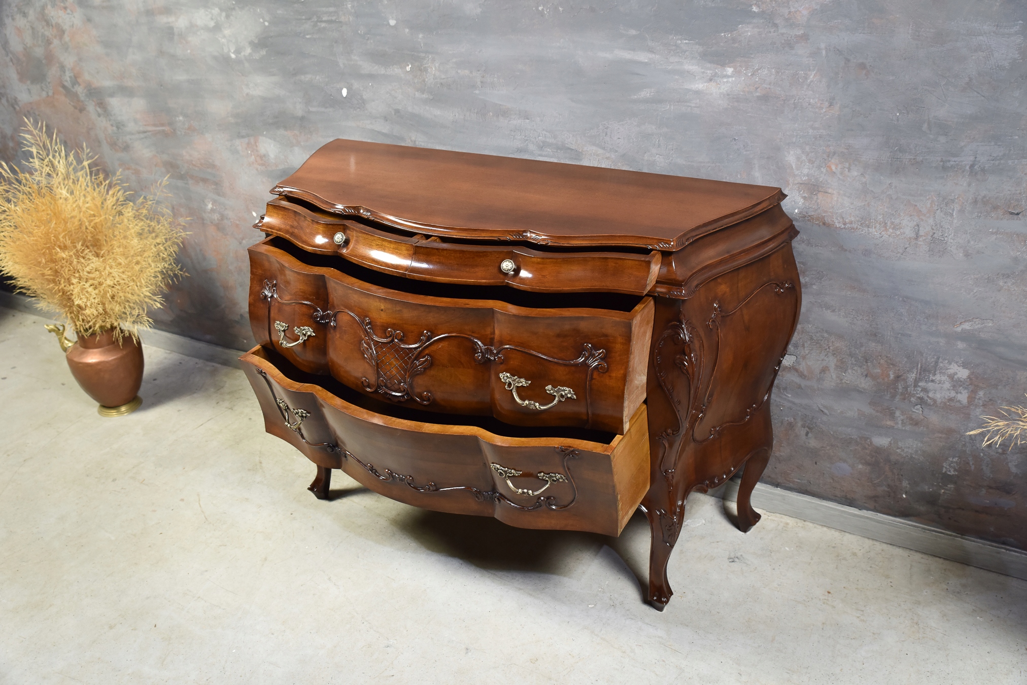 МАССИВНЫЙ КОМОД, С БОГАТОЙ РЕЗЬБОЙ, 3 ЯЩИКА, МАССИВ ОРЕХА ПОСЛЕ РЕМОНТА.