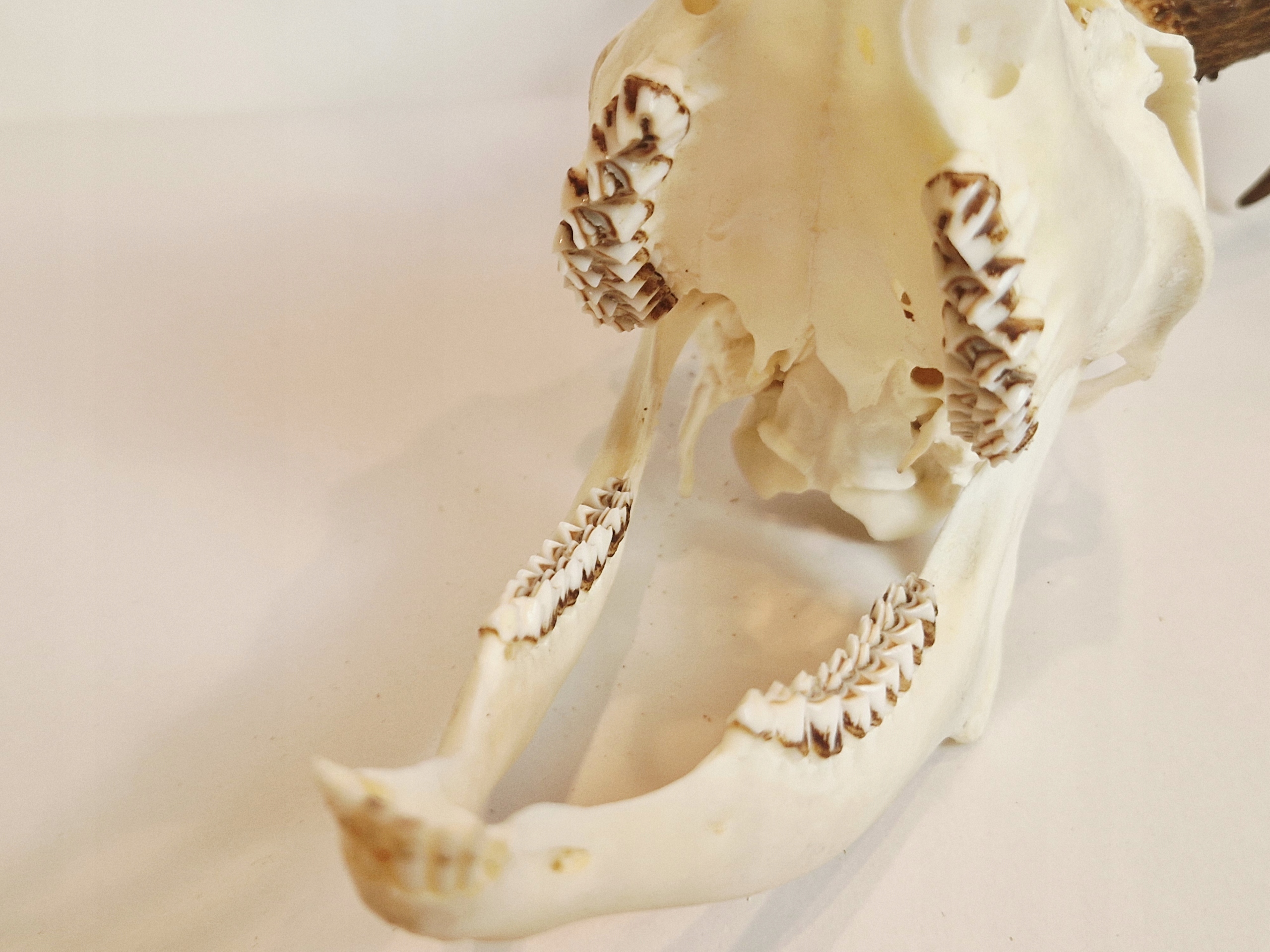 Череп и челюсть без значительного повреждения - полные верхние и нижние зубы.
