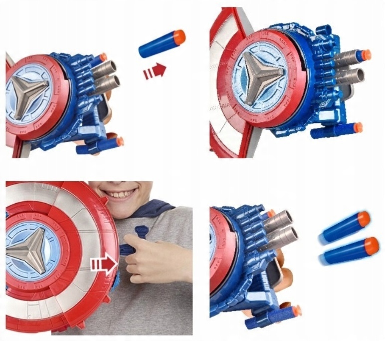 - Легкий пластиковый щит, в котором находится двухдротиковая пусковая установка скрытый (в наборе 10 стрел). Маленькому герою не составит труда носить ее во время игры,