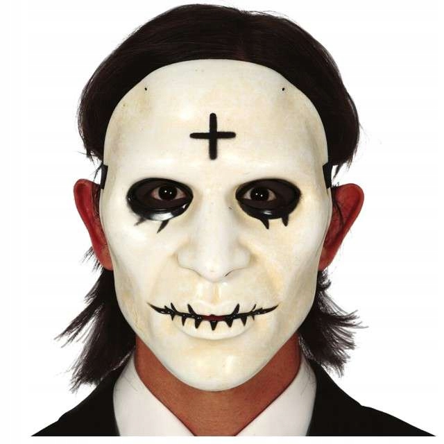 maska MĘŻCZYZNA z krzyżem biała UPIÓR halloween