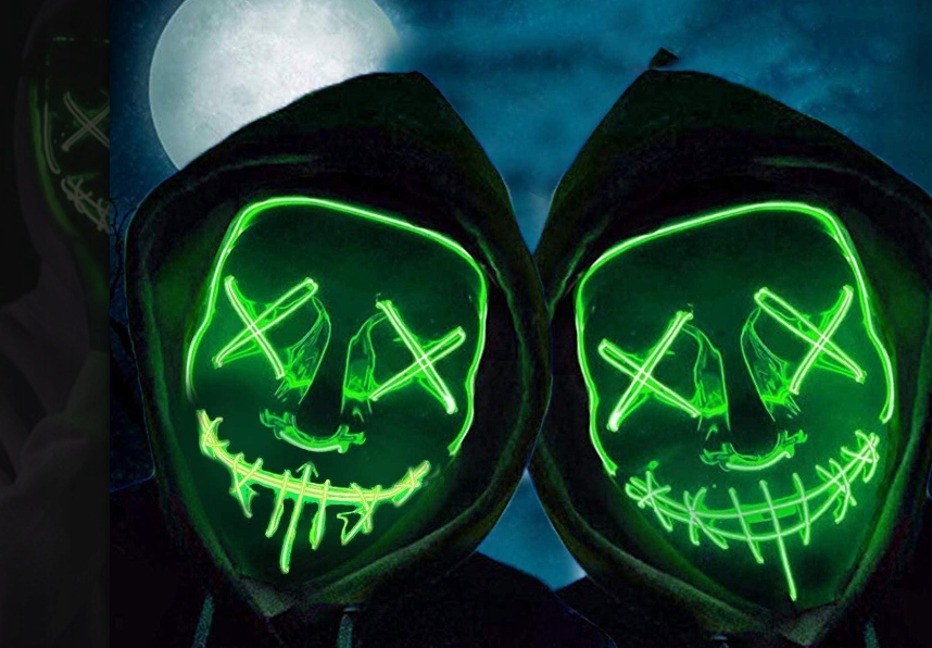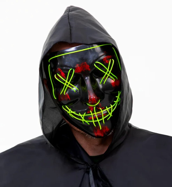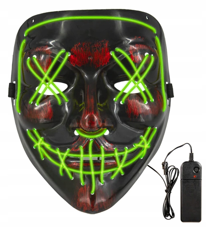 MASKA CZASZKA ŚWIECĄCA CZARNO-ZIELONA 3 PROGRAMY ŚWIATŁA HALLOWEEN