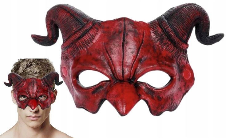 МАСКА ДЕМОН ДЬЯВИЛ ЛЮЦИФЕР РОГА ХЭЛЛОУИН ПЛАТЬЕ КАРНАВАЛЬНЫЙ КОСПЛЕЙ