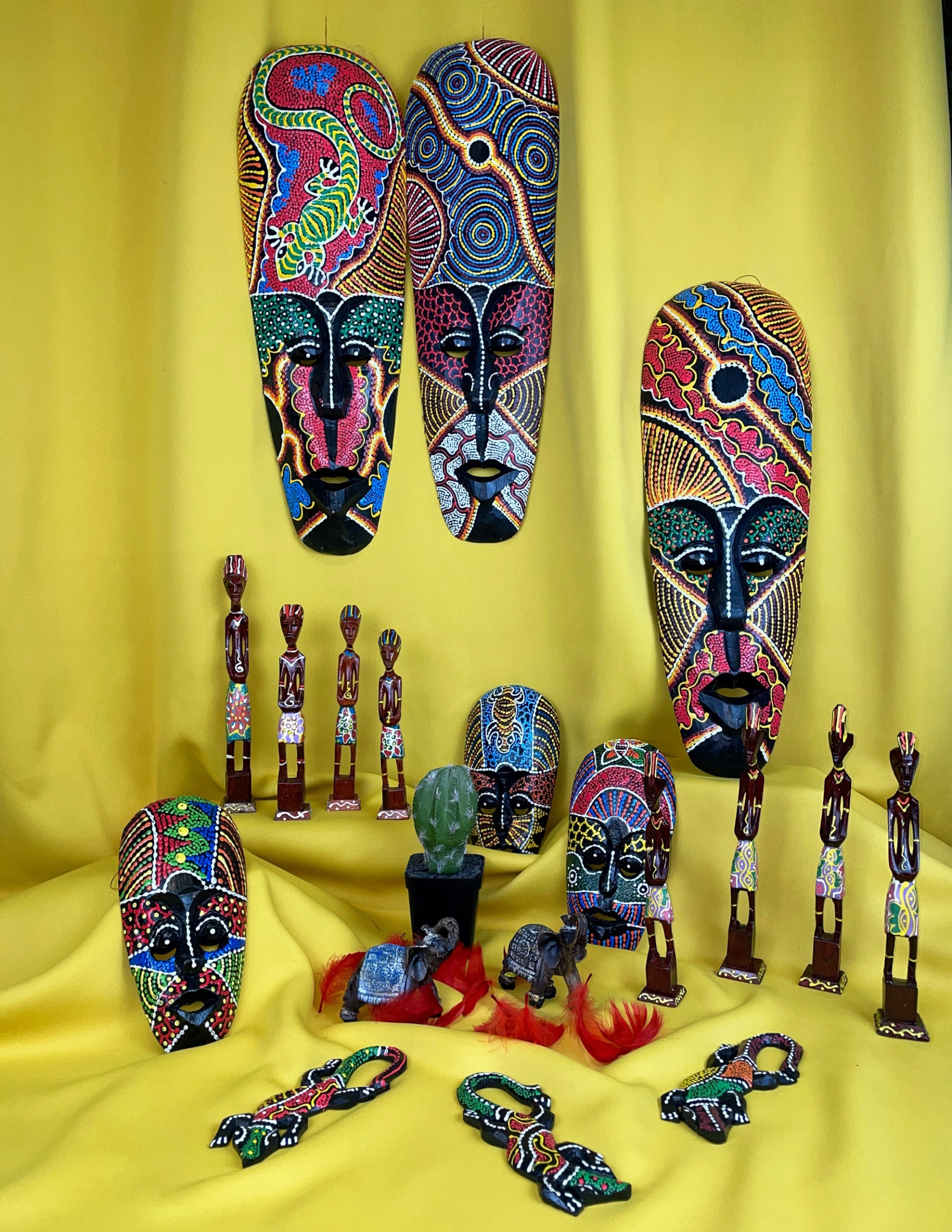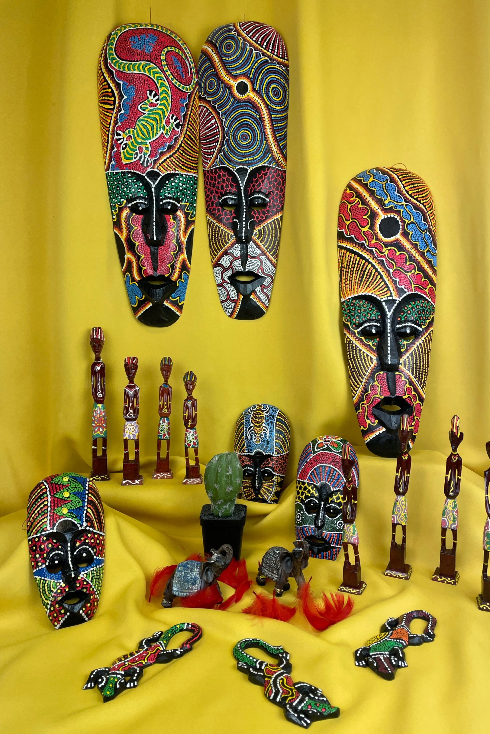 МАСКА ДЕРЕВ'ЯНА СКУЛЬПТУРА 50 СМ МІКС З 3 ВЗІЗУНКІВ