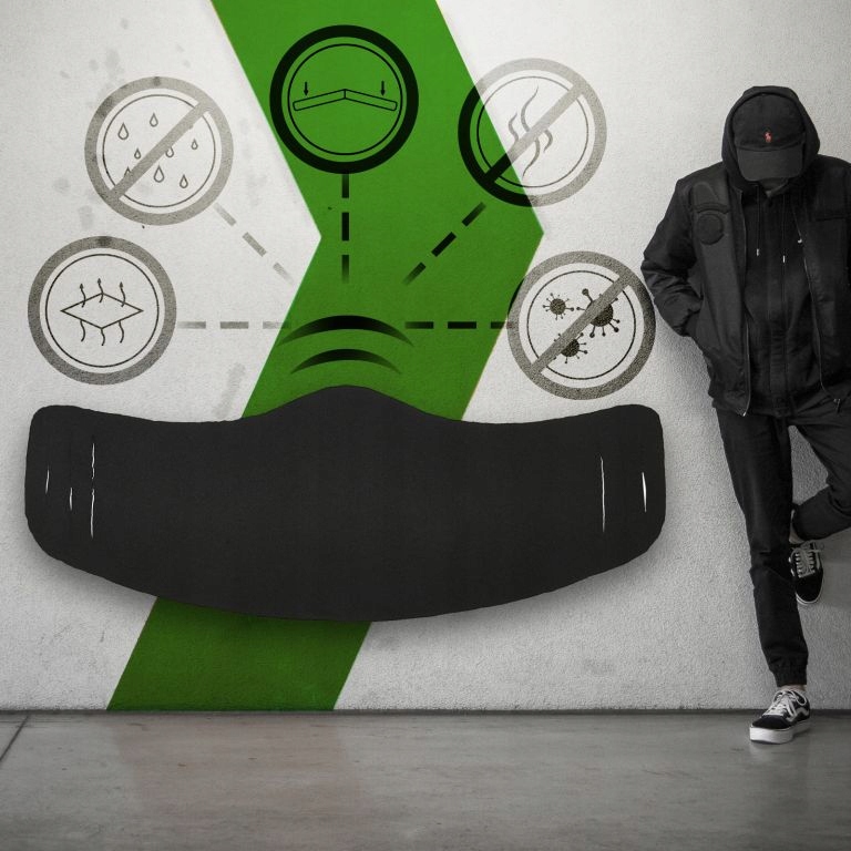 Ношение маски на вашем лице защищает вас и окружающих вас людей. Эта маска с множественной текстильной частью состоит из одной невидной и дышащей полиэфирной ткани с тремя прорезями.