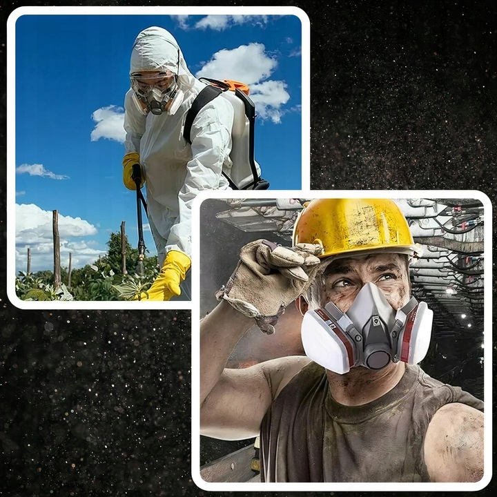Полумаска эффективно удаляет химические пары, туман, газы, пыль и аэрозоли из окружающей среды. Благодаря использованию угольных и пылевых фильтров этот бесценный инструмент очищает воздух от потенциально вредных веществ, способных нанести вред дыхательной системе.