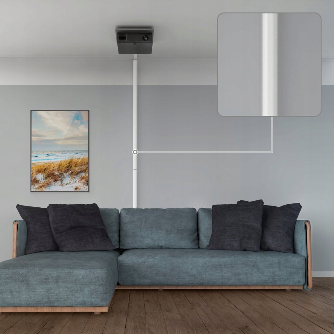Благодаря окрашенной поверхности, маскировка может быть идеально с цветом стены . Тонкая, полугольная форма с высотой всего 21 мм делает его почти невидимым , идеально гармонизируя с телевизором на стене или проектором на потолке.