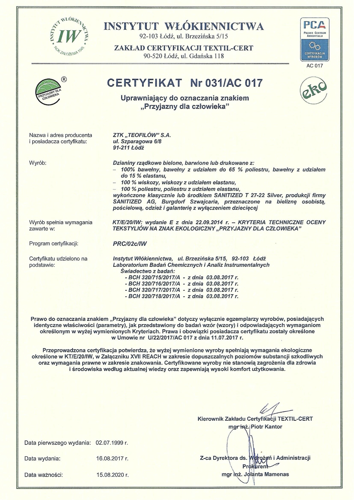 - Сертификат OEKO-TEX - СТАНДАРТ 100 - класс 1 - разрешен контакт с лицом